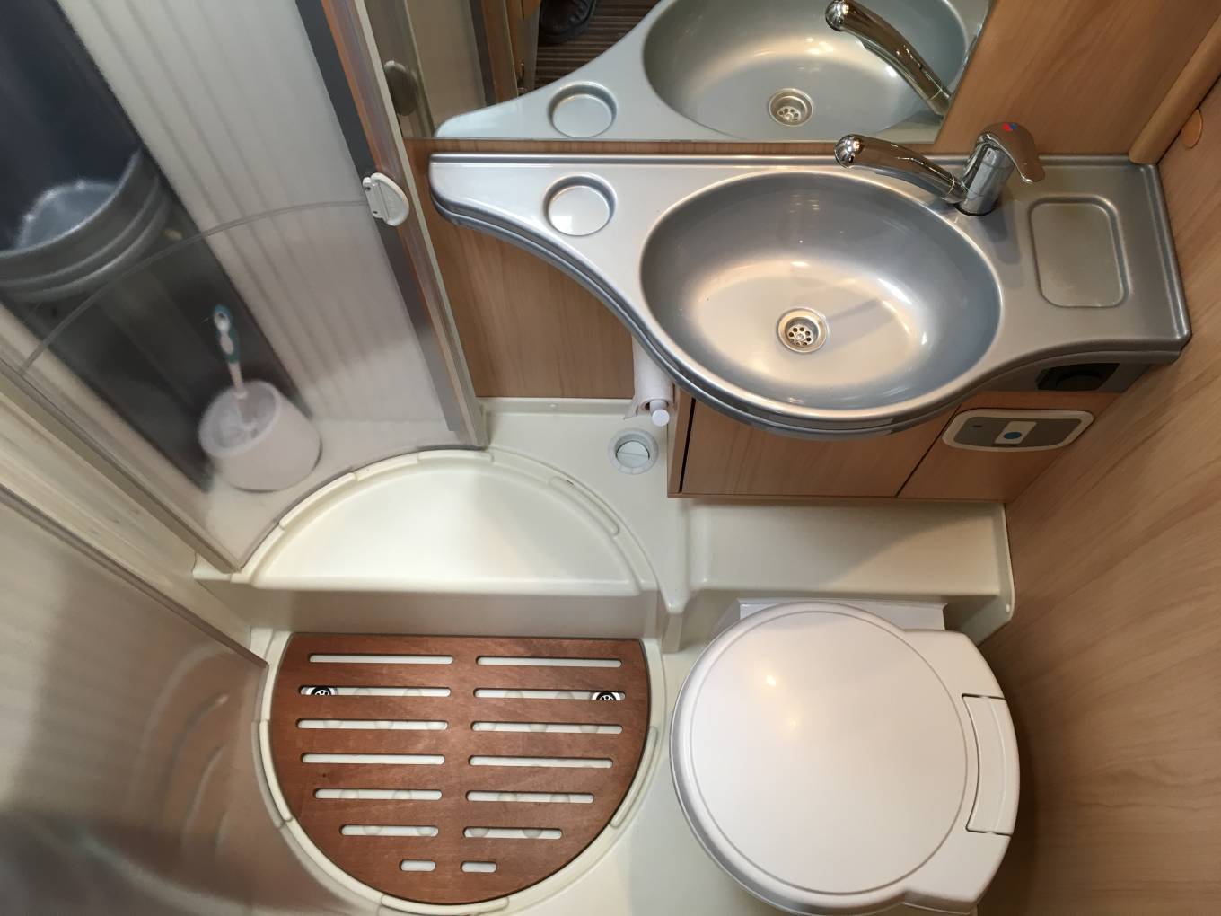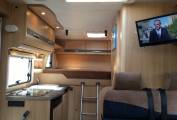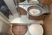 Outside there are access doors to the garage from both sides, with a larger door on the offside of the motorhome, an Omnistor awning, Thule twin electric step, reversing camera, 4 bike cycle rack, gas locker including one gas bottle, side storage pannier locker, access to toilet cassette and a mains hook up point.