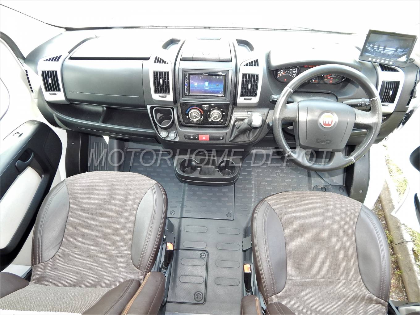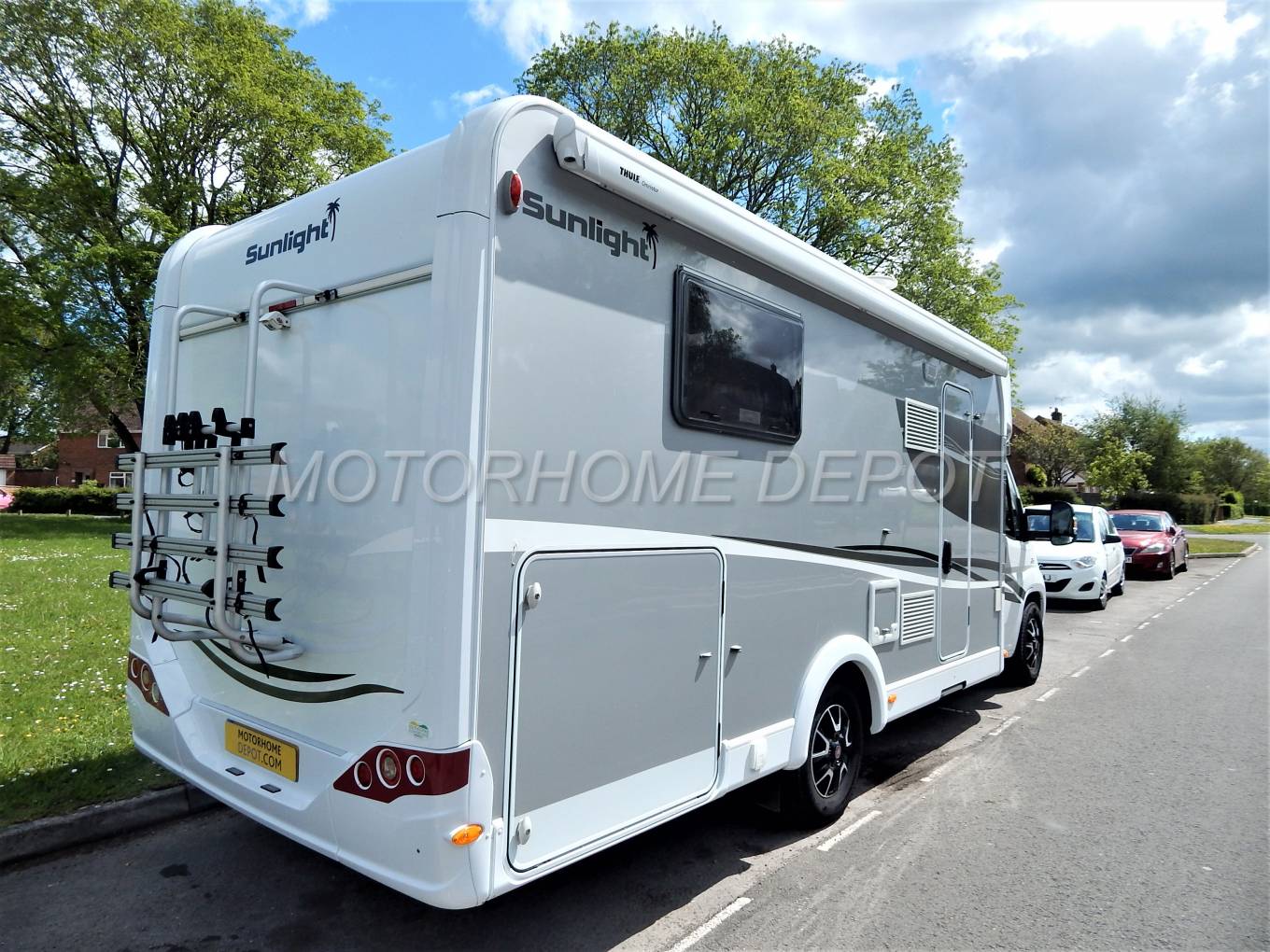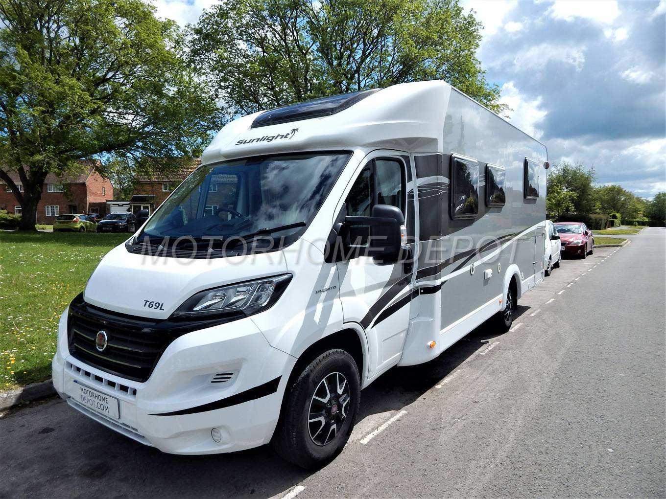 From out of the Hymer umbrella this Sunlight T69L with the sort after Island Bed. Based on the ever popular Fiat Ducato chassis with the 2.3L 150 bhp multijet diesel engine. Comformatic 6 speed automatic gearbox, it has had two owners from new covered 24,213 miles and comes with a comprehensive service history. Last Hab check 07/20 by Magic Motorhome Man, last mechanical service 07/20 APH. The Cab benefits from: Cruise control; driver and passenger airbags, Cab air conditioning, electric front windows, electric mirrors, rear view camera, Multi media double din head unit with apple car play; Central locking; Alloy wheels.