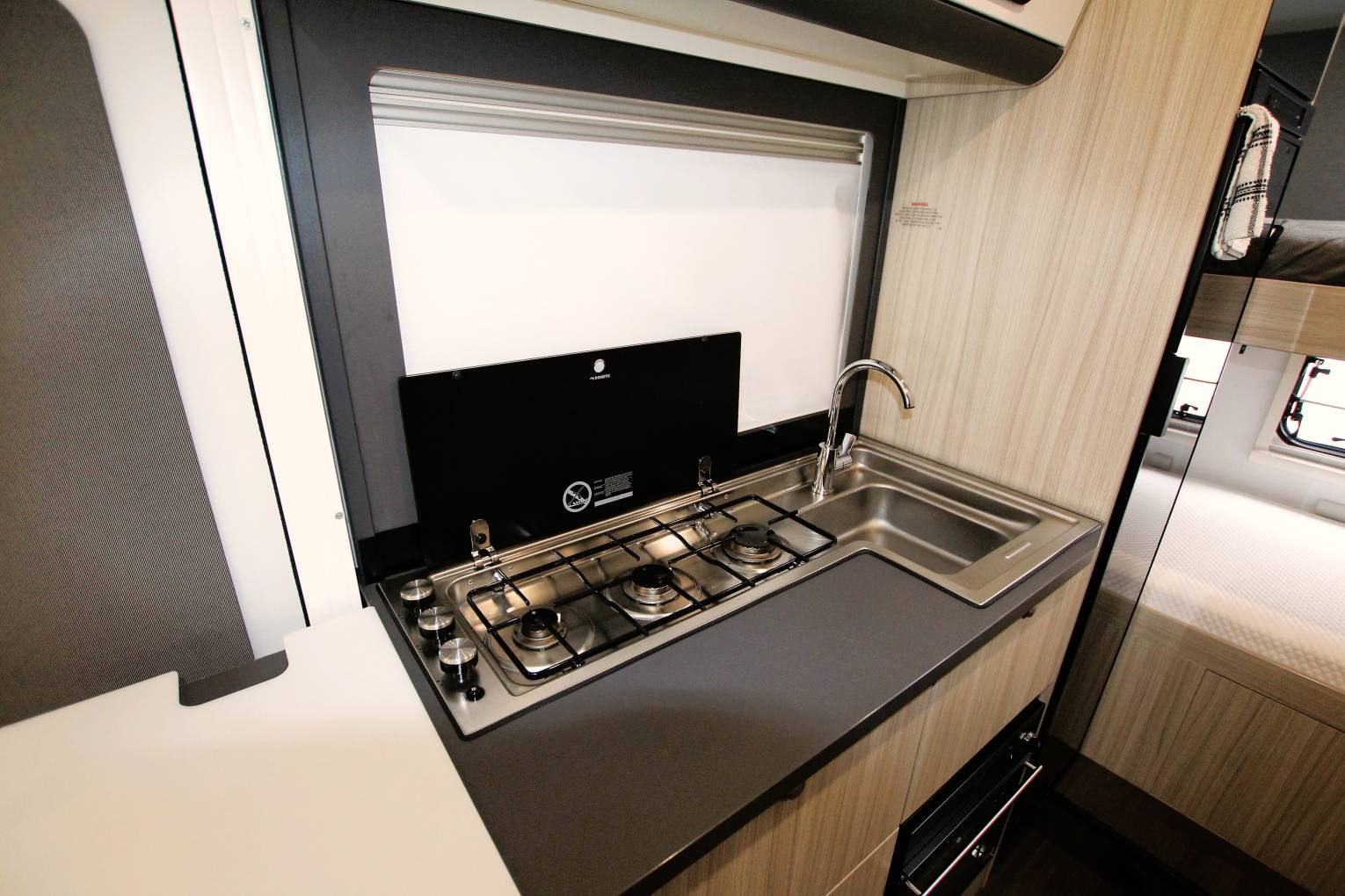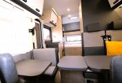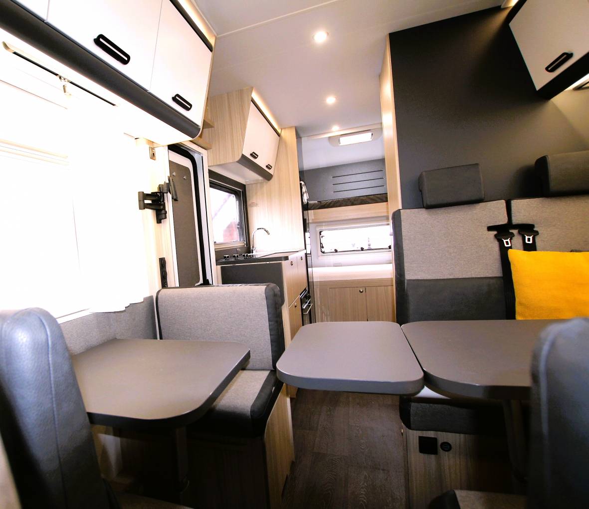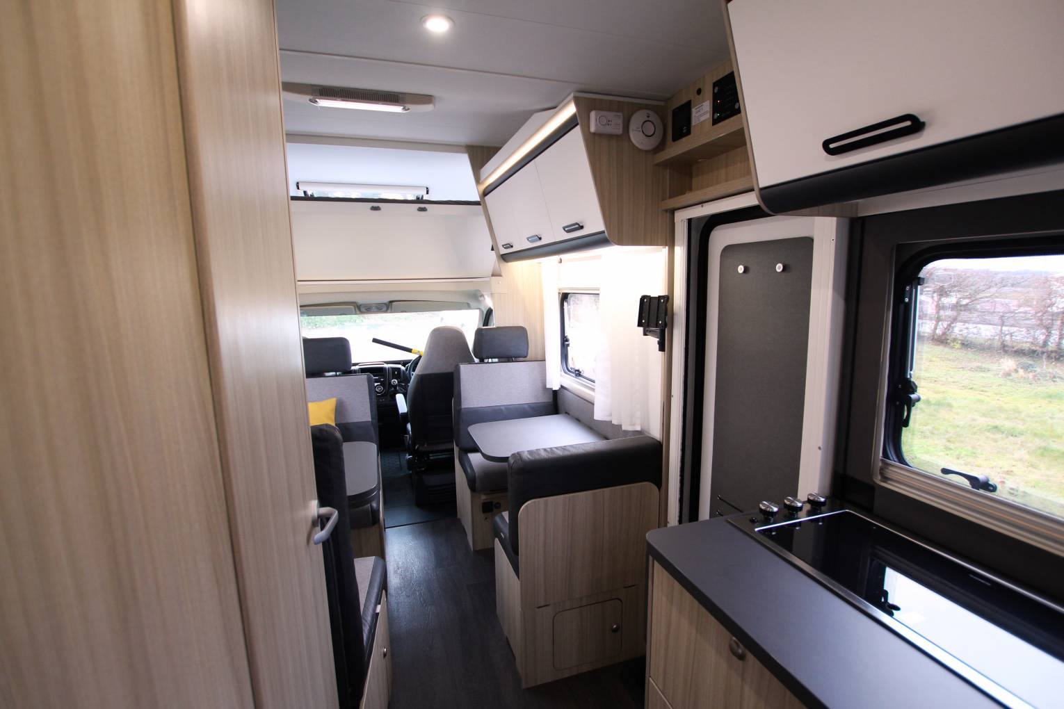 This 7 berth, 7seat belt motorhome is perfect for a family or ideal for a group of friends wanting to holiday as it is so roomy -with sleeping for up to 7 people. Upholstered in a colour pallette of greys it is stylish,comfortable and functional.