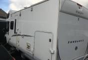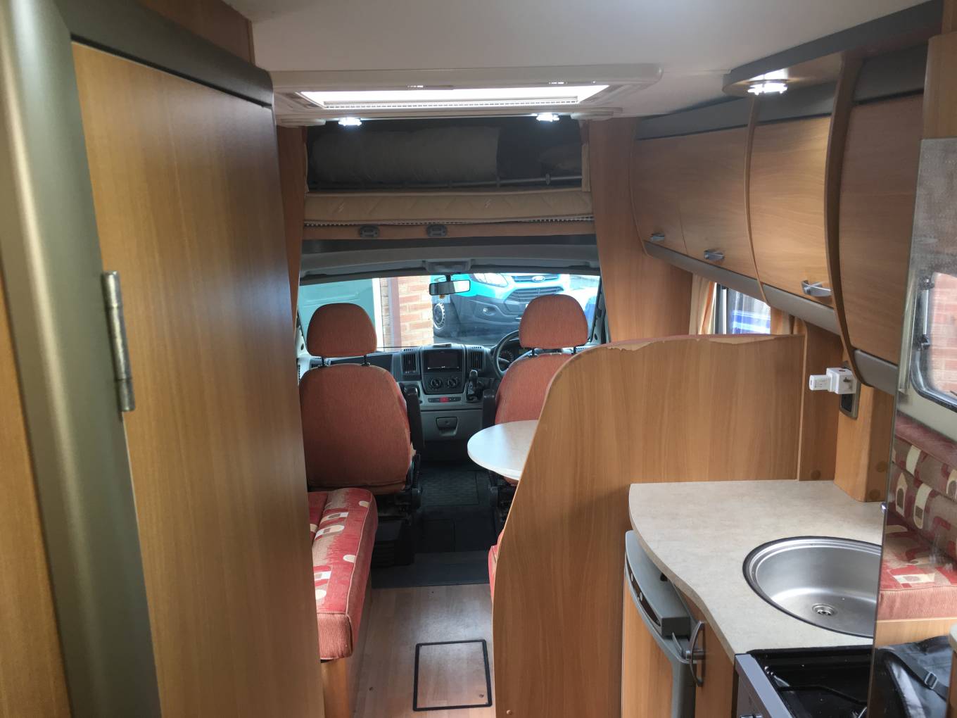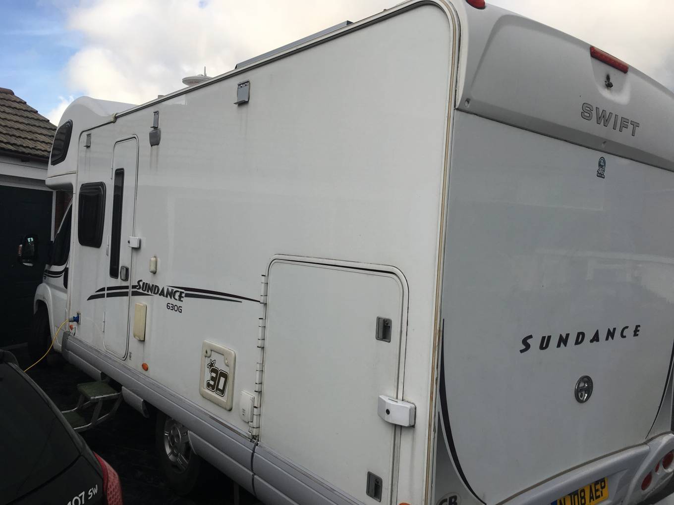Swift 630G 2008 model fitted with large rear garage, double bed over and overcab bed. Fitted with 4 full 3 point seat belts, well appointed kitchen, washroom with cassette toilet, shower and washbasin. Garage door dimensions 38 inches wide x 44 inches high by 82 inches deep. Full service history including timing belt change. Part exchange welcome. For further details please call Simon on 01432 488 996. Vehicle available in Kidderminster.