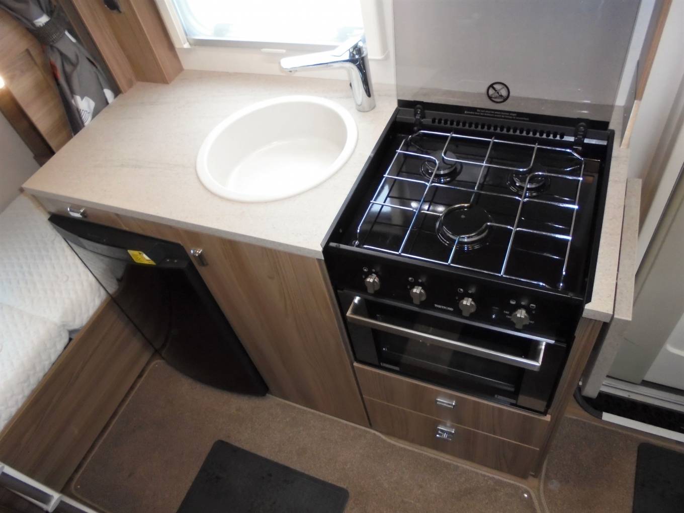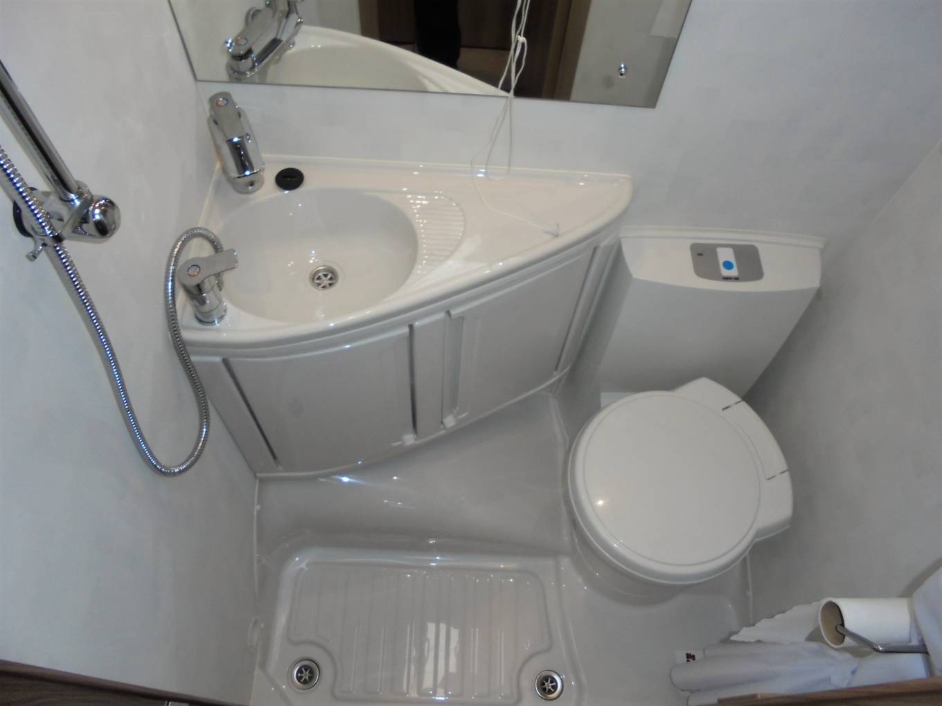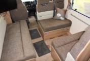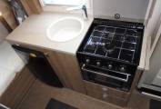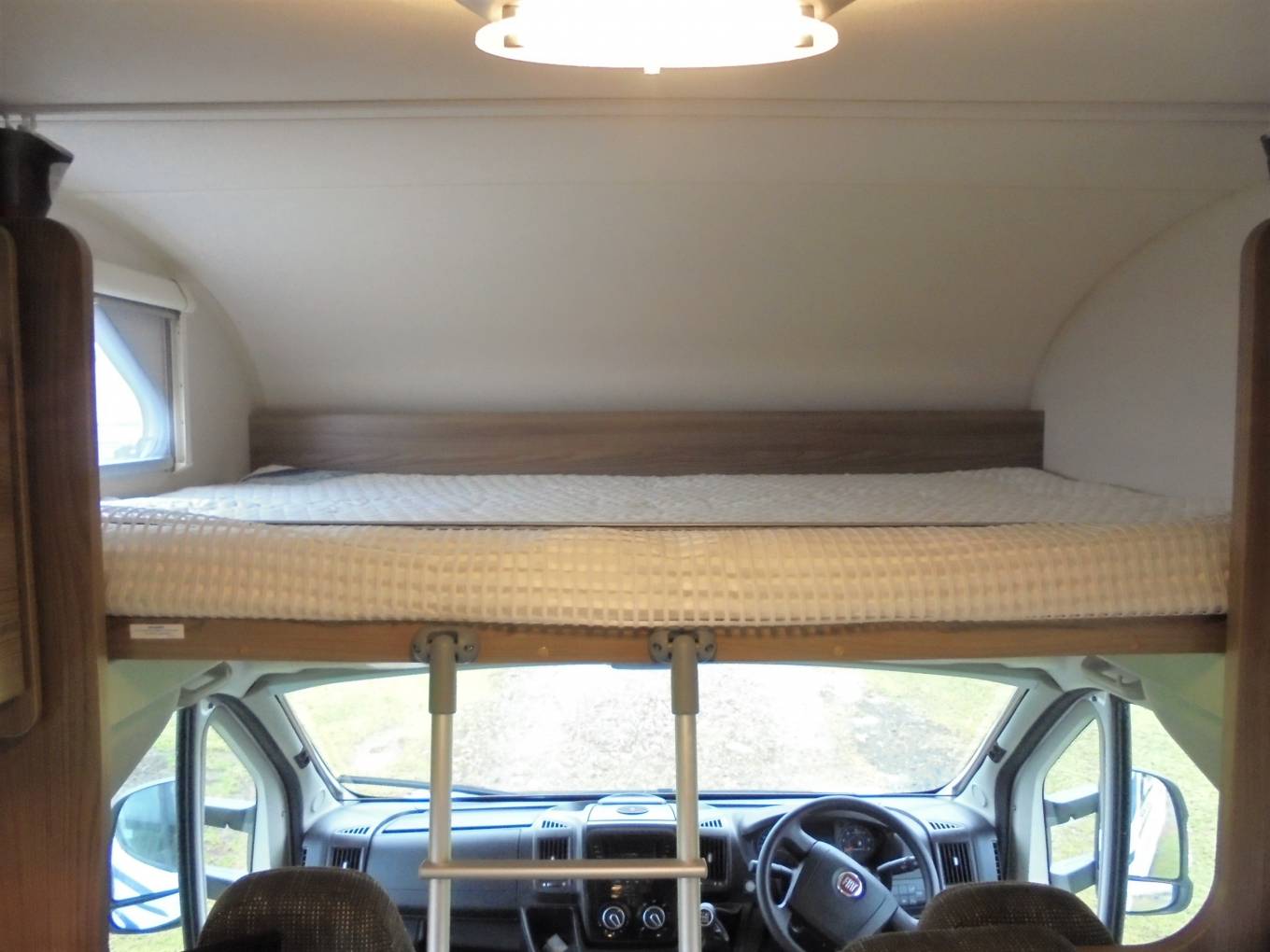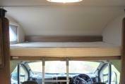 Layout is over cab double bed, central lounge and dining area which converts to a spacious double bed, central kitchen and washroom and twin bunk beds at the rear.