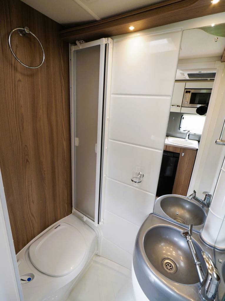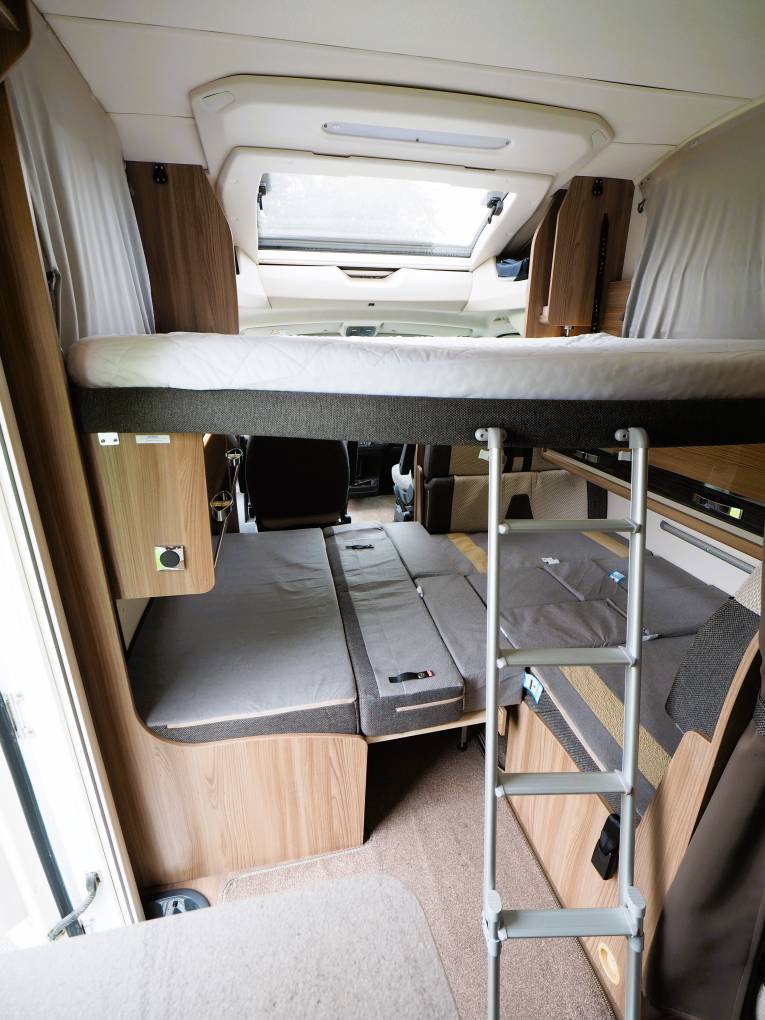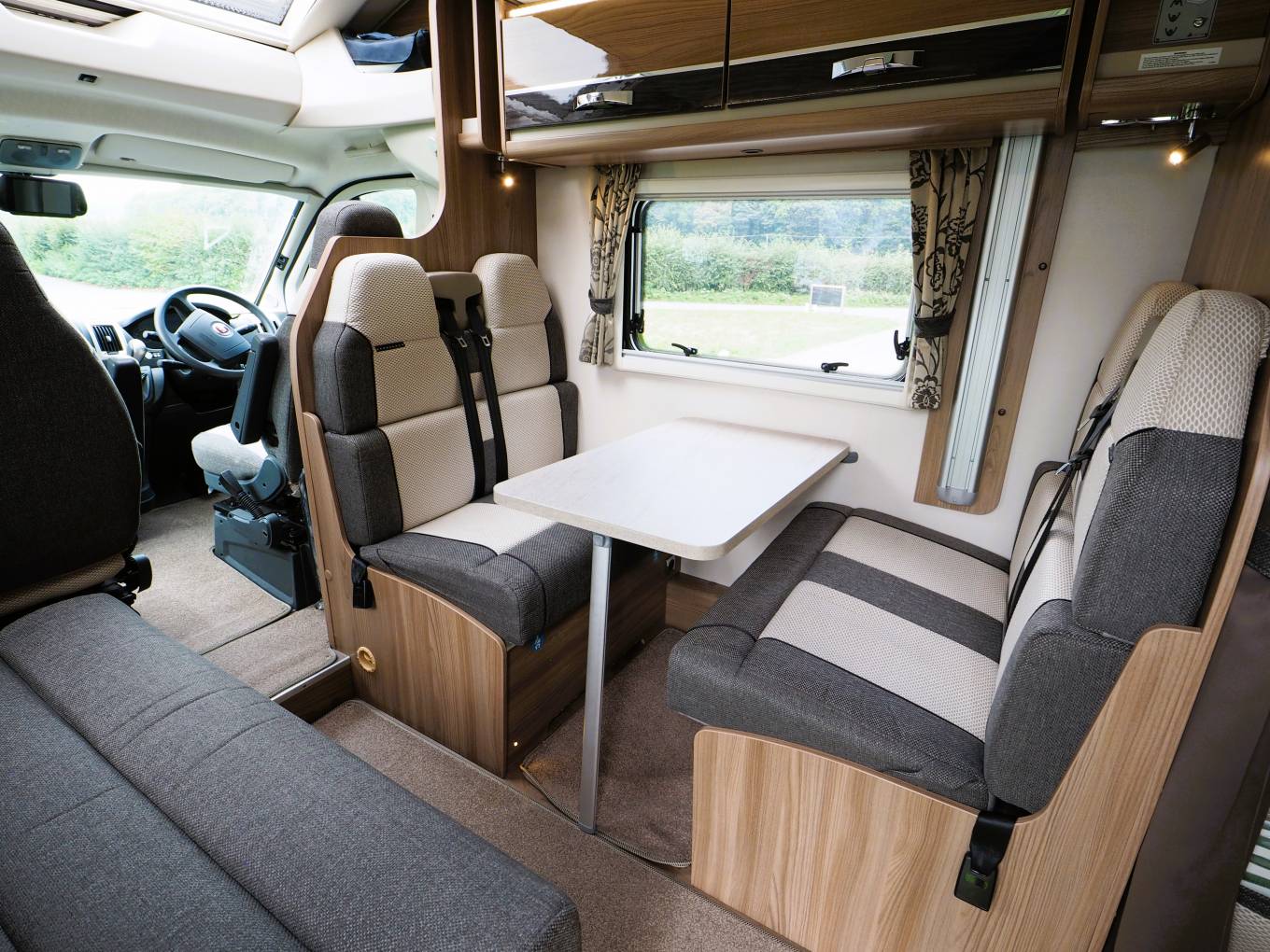 Sleeping is provided from a drop down electric bed providing 2 berth for 2 adults and by converting both the dinette and rear lounge which both also turn into large 2 berth beds giving the 6 berths in total. The drop-down bed has both low and high settings so if the dinette bed conversion is not required you can set the bed to a lower position.