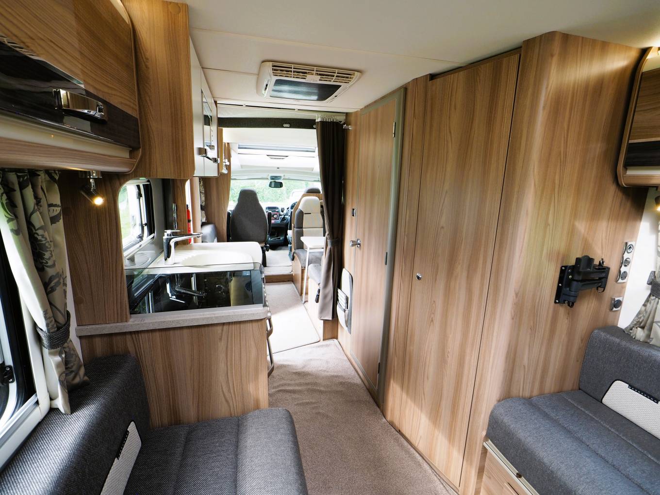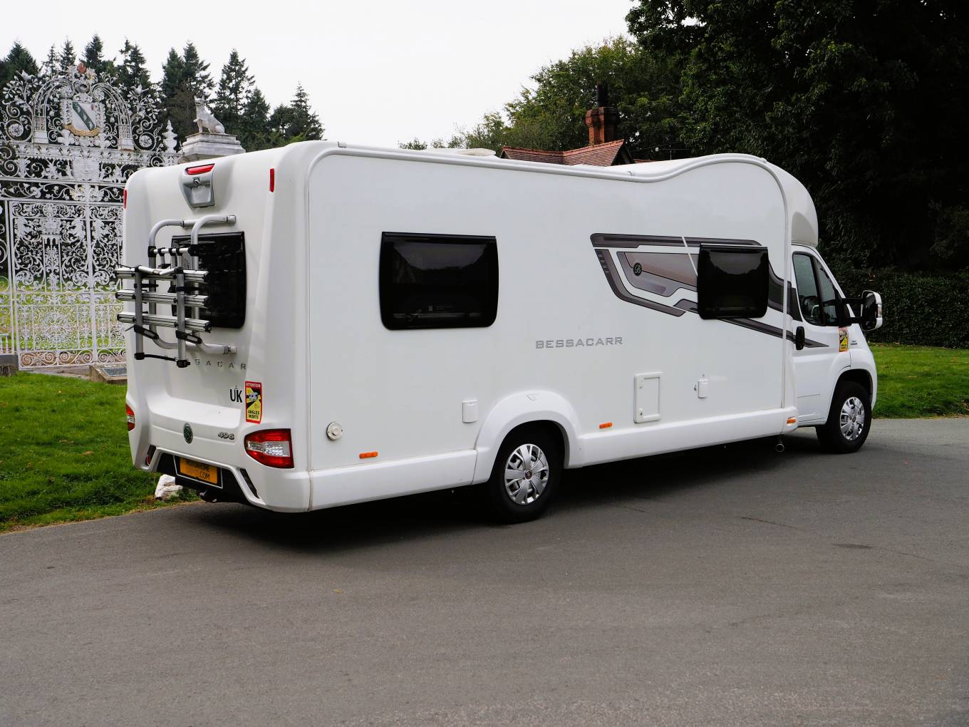 Externally there are the usual EHU and water points, the gas locker and filler point, an external locker for storage, and both an external 230v socket to provide outside power to an awning and external gas point for use of a gas BBQ. A bike carrier for transporting up to three bikes is fitted to the rear. A subscription security tracker system is fitted as well as the factory fitted alarm and immobiliser.