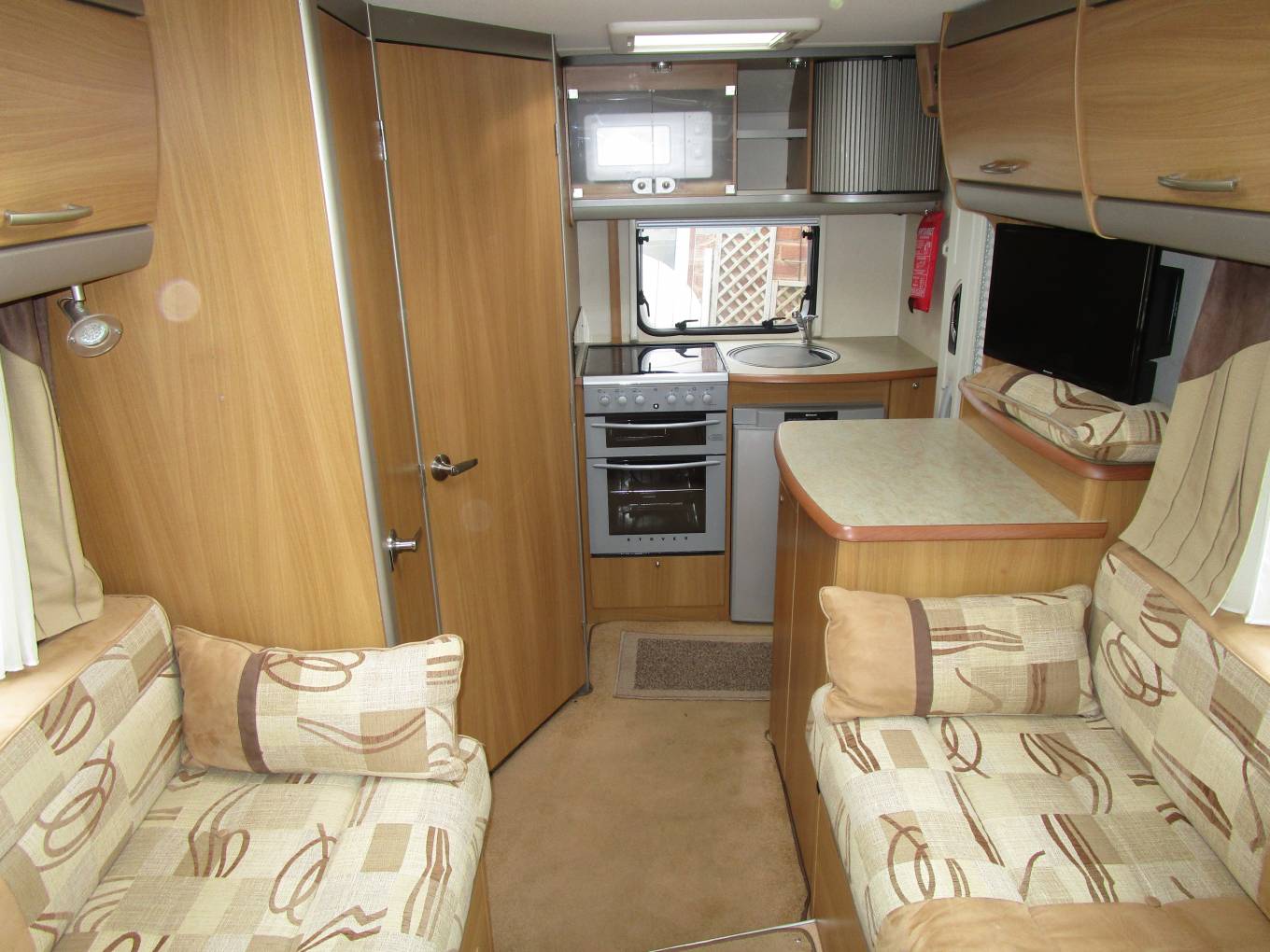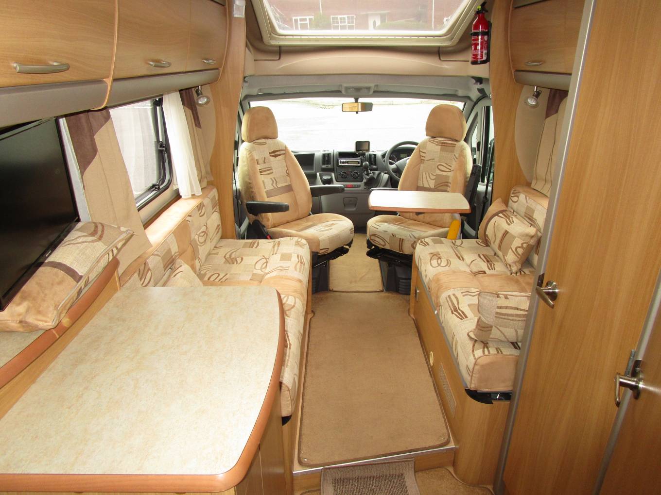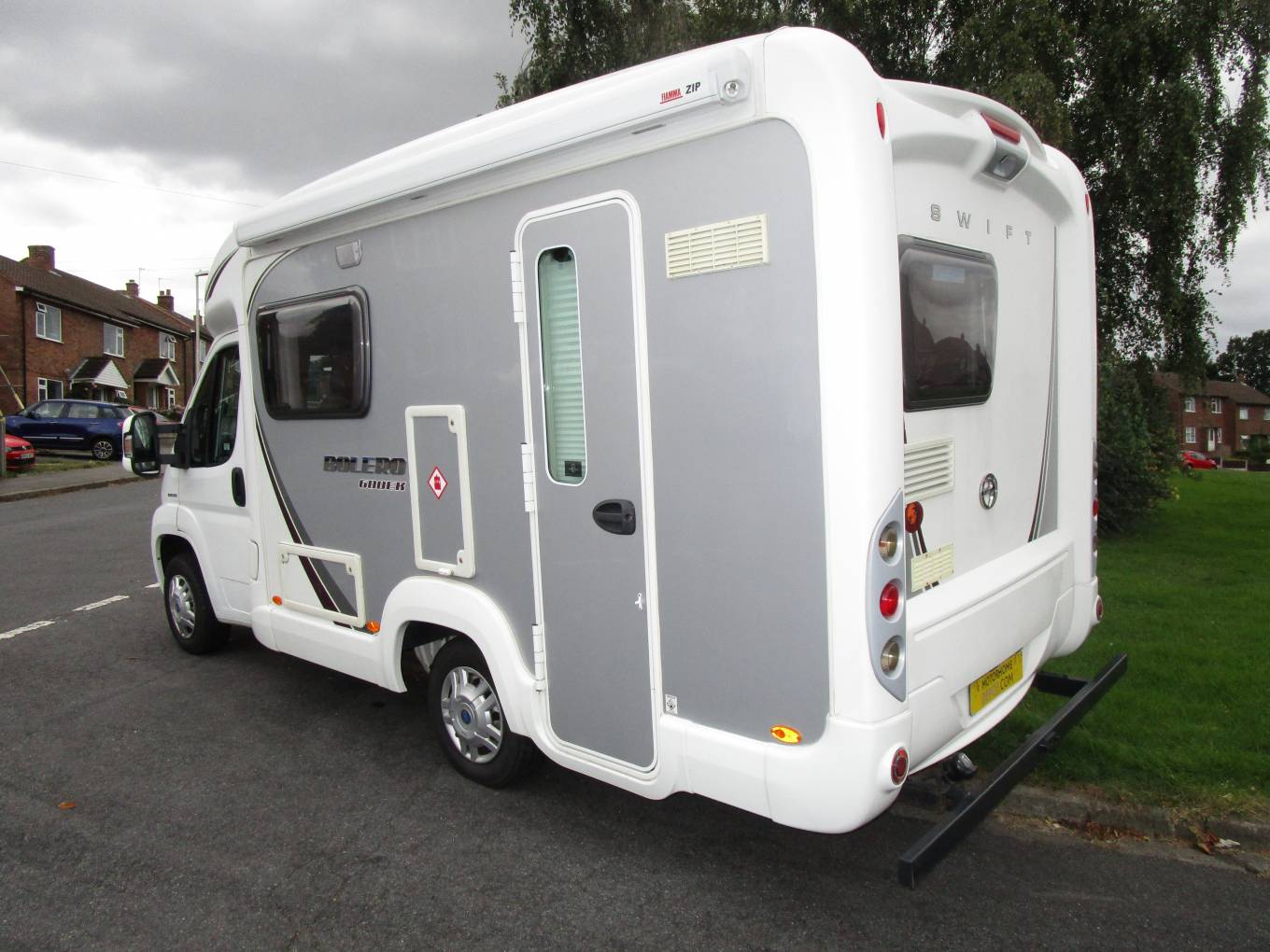 Here we have a lovely example of the compact Swift Bolero 600EK, this vehicle is perfect for the couple looking for all the comforts of home in a sub 6 metre luxury motorhome. At the front of the vehicle we have the spacious lounge area that can comfortably seat 6 when entertaining thanks to the two front swivel seats, moving towards the rear of the vehicle we have a spacious washroom with cassette toilet, hand basin and shower alongside a well equipped kitchen area with a microwave, full size cooker with oven and grill and a fridge complete with ice compartment. This vehicle also benefits from Sat Nav, Wind out awning, Reversing camera. Towbar, Cruise control and Air Conditioning.