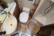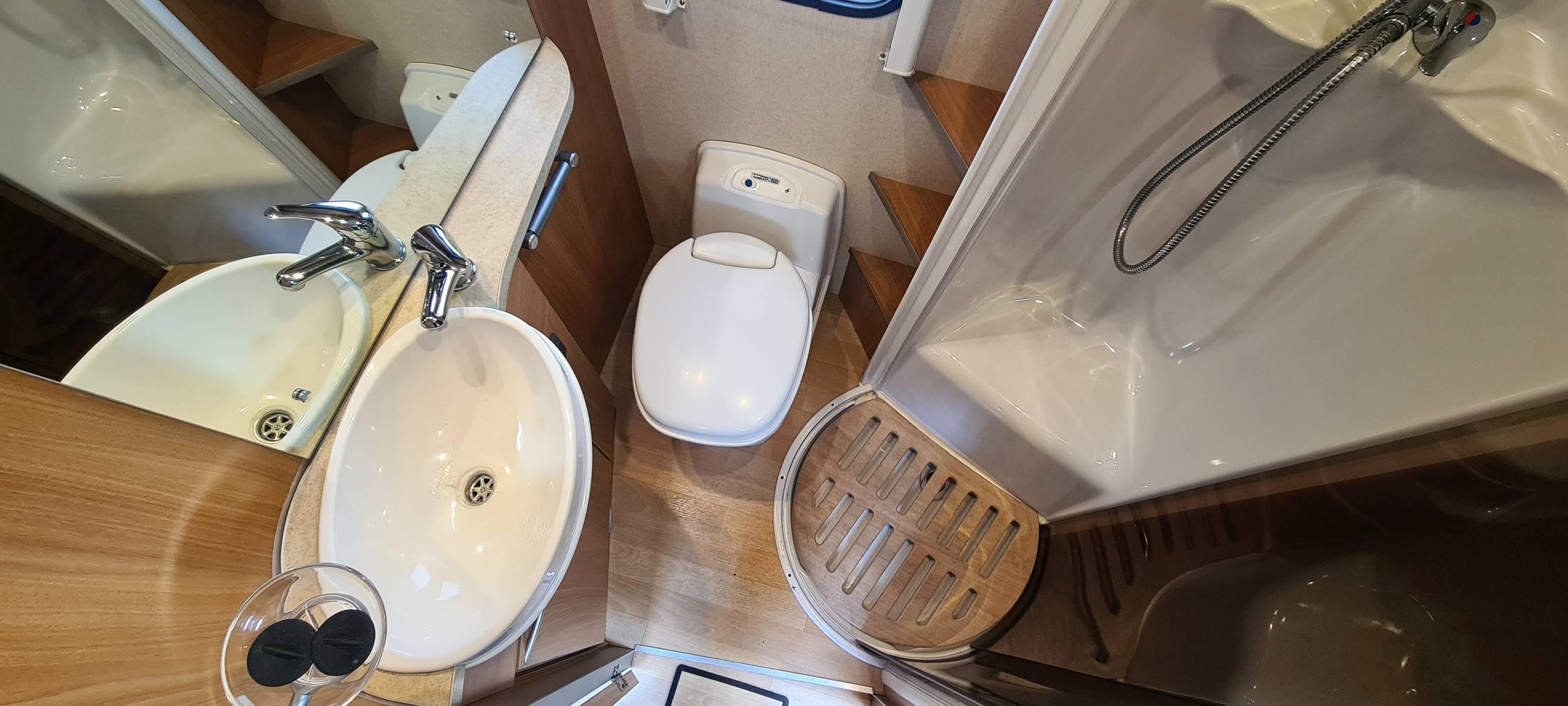 The washroom consists of a Thetford flush cassette toilet, a