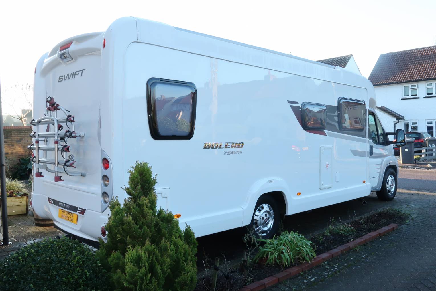 Built on the class leading Fiat Ducato chassis this Bolero has the more powerful 150 Multijet 2.3 litre engine so cruising on motorways or climbing hills shouldn't pose any problems. The silver cab and stylish graphics enhance its already handsome looks. Externally there is a tow bar with electrics and a bike rack which will carry 4 bikes.