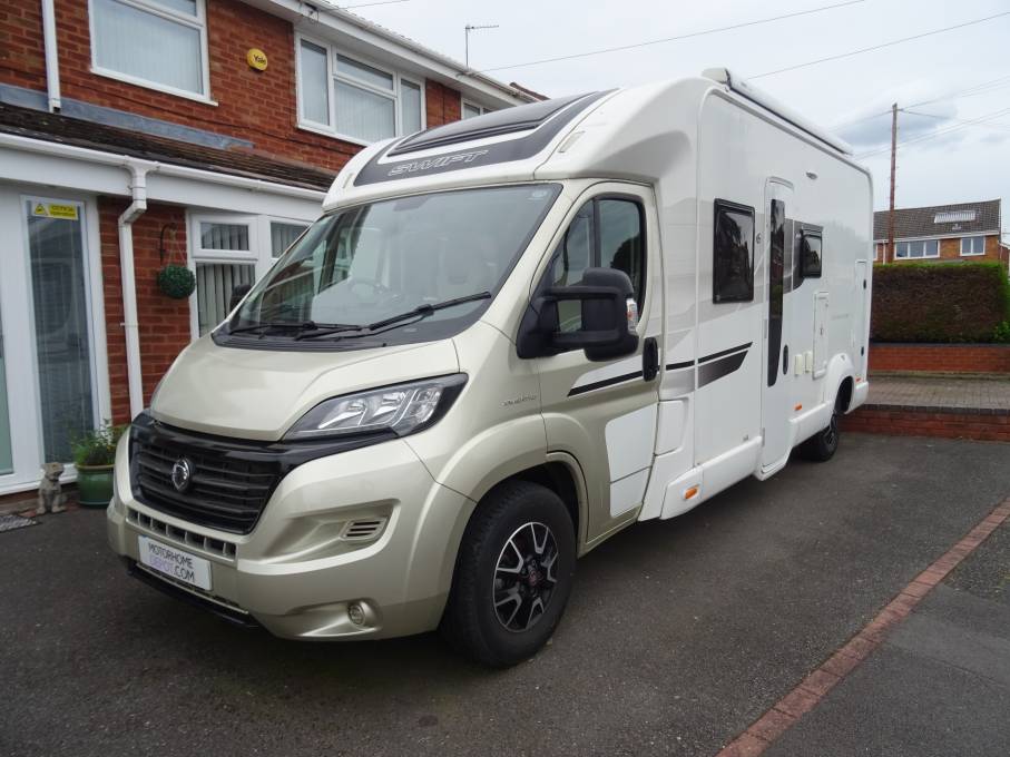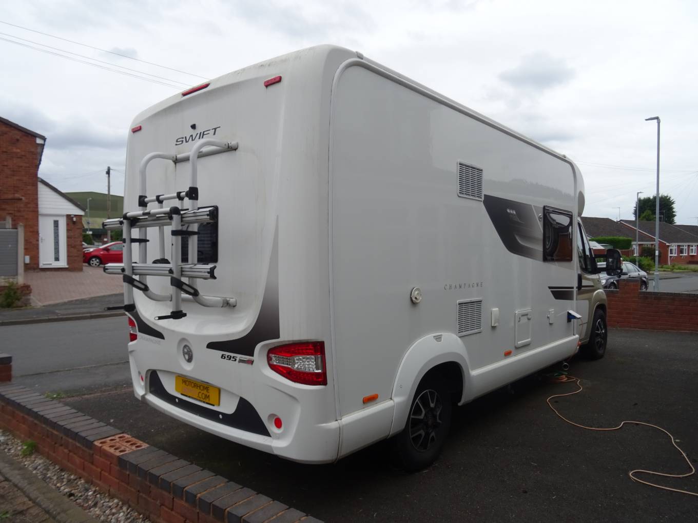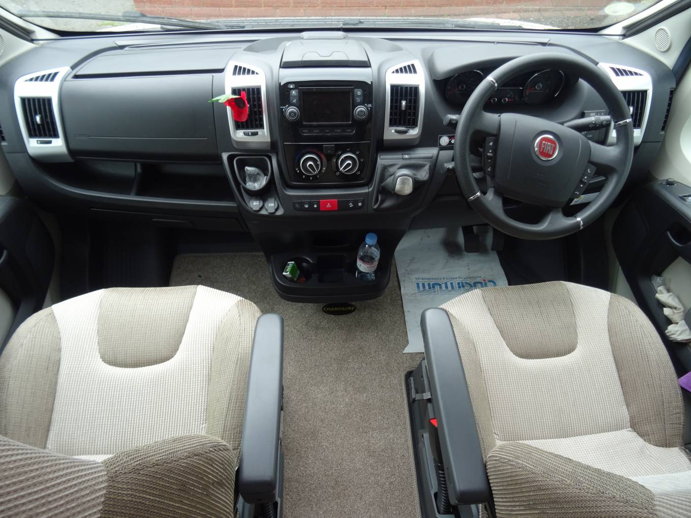 This classy Swift Champagne 695, which is a special edition Escape, 6 berth, 5 belts, only 5,056 miles. On a Fiat chassis with 2287cc multi jet diesel engine with an automatic gear box Inside, sat nav, reversing camera, air conditioning, multi-functional steering wheel.
