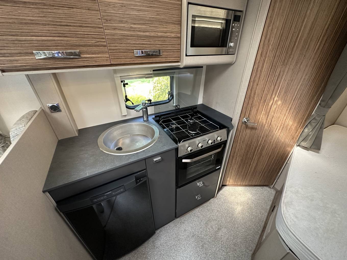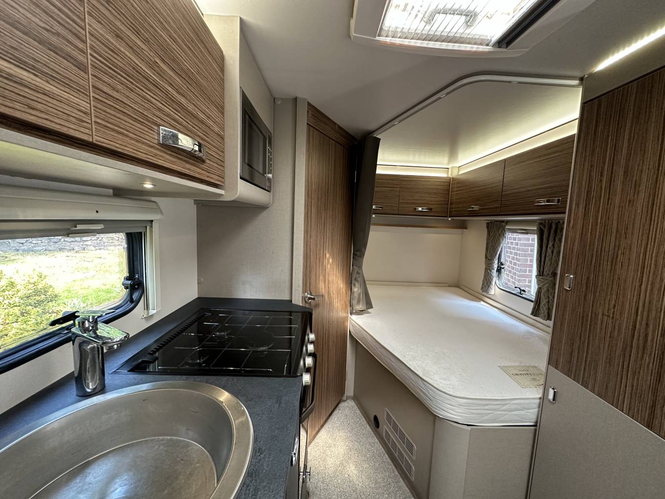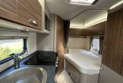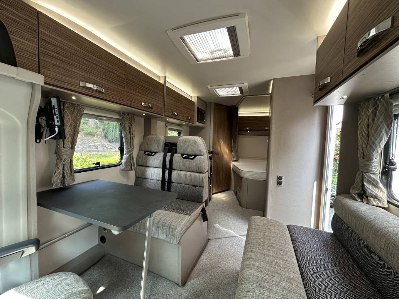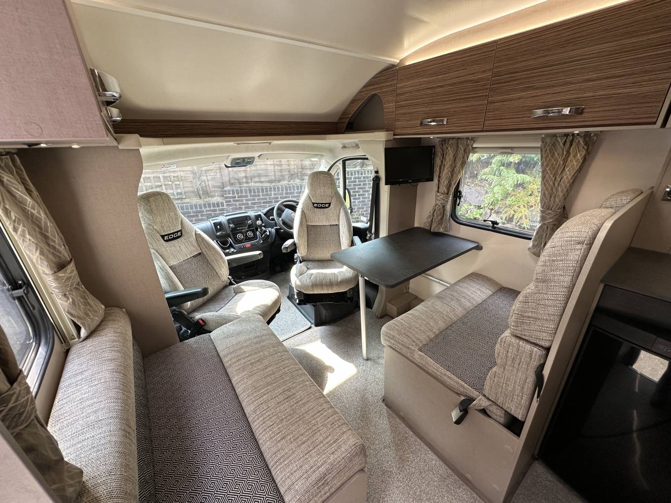 The dinette area is central to the van and the table, the swivel seats to the front will provide extra seating around the table when required. Extra Features: fitted with an alarm and tracker with subscription via Swift Command - TV and Aerial - THULE Awning. Front seating area can also be converted into a double bed using part of the dining table and the seats being pulled out