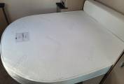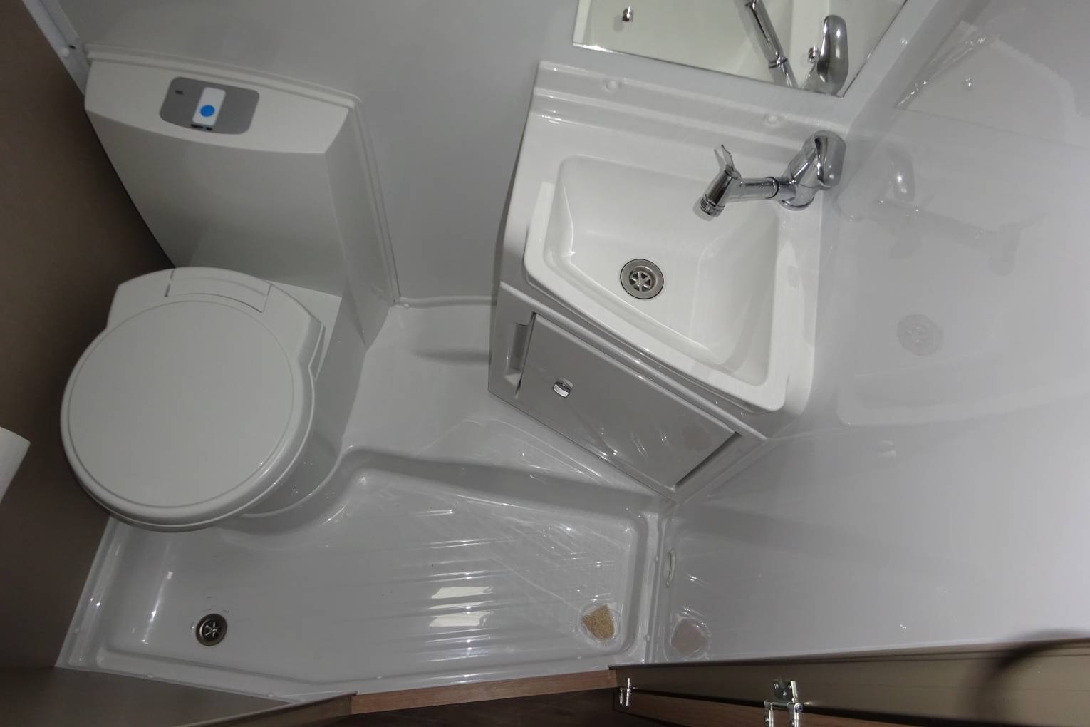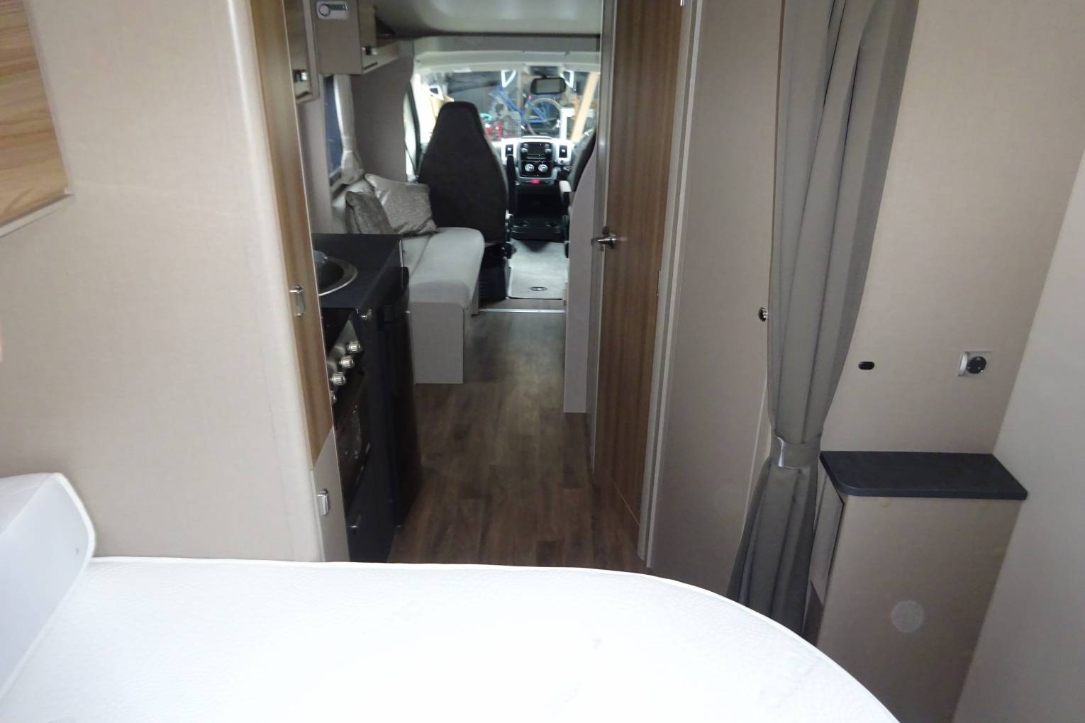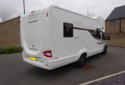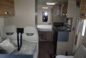The outside of the motorhome is in excellent condition. As you step inside the motorhome you get a feel for the newness of this motorhome. It is light and airy and in excellent condition. At the front of the motorhome you find a large seating area that benefits from two captains chairs and easily seats 5 around the table. It has a well equipped kitchen with a good sized fridge, sink, 3 burner gas hob, oven and grill, and microwave. Opposite the kitchenette you find the bathroom fitted out with a toilet, sink and separate shower all in excellent condition. At the rear of the motorhome you find a large double island bed, with another large double bed over the cab it comfortably sleeps 4. There is plenty of storage throughout the motorhome and benefits from a rear garage that is accessible from inside and out.