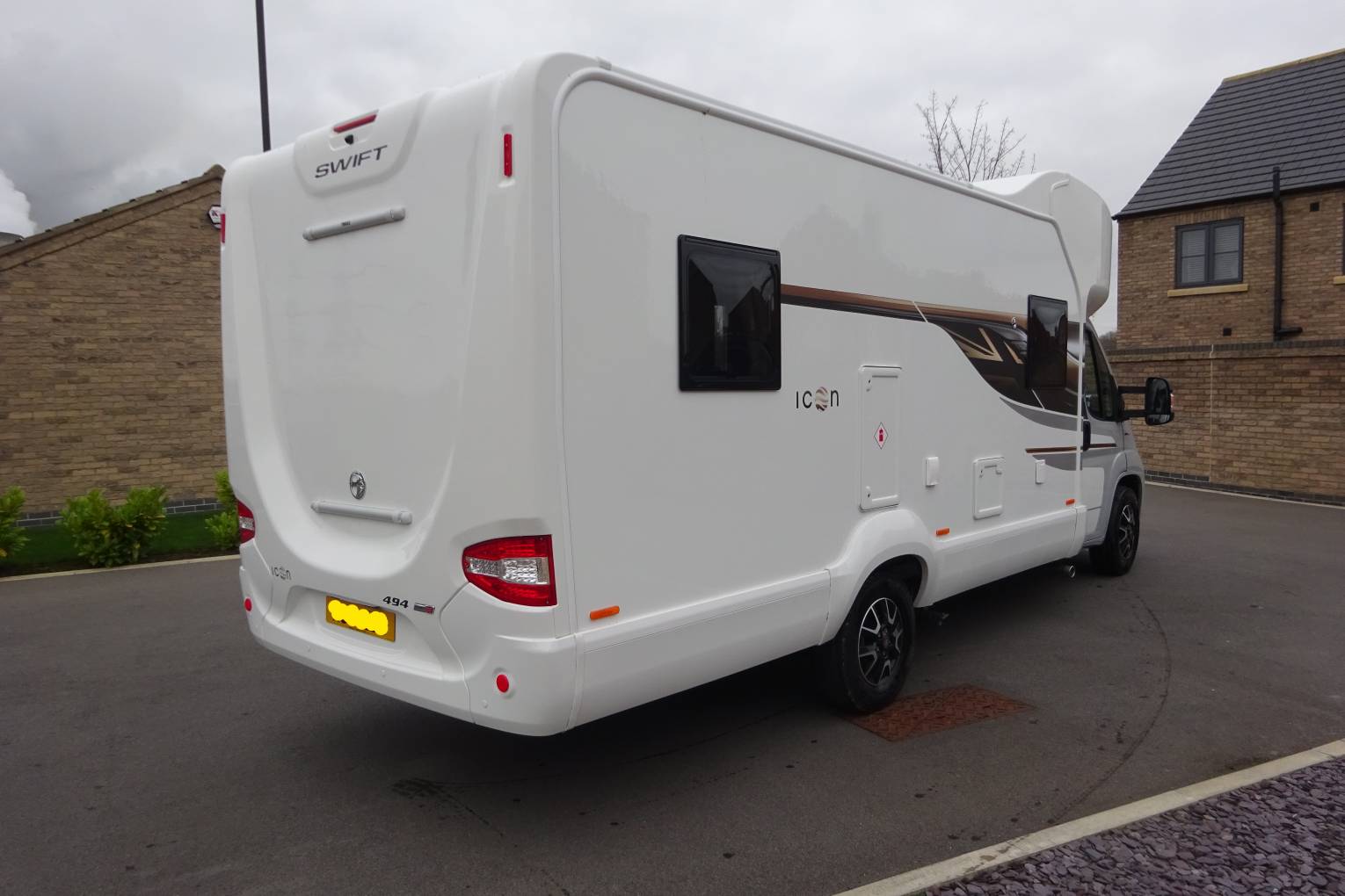 Motorhome Depot South East Yorkshire welcomes you to the sale of the Swift Edge 494 Icon. This is a beautiful 4 berth motorhome with 4 travelling seatbelts. It is in excellent condition inside and out, being less than 12 months old it is not due its first service or hab check yet, and is still covered by the manufacturers warranty. The Icon range is unique to Kimberley Motorhomes and has a unique exterior colour scheme and graphics and upgraded furnishings to the cab and seating area, making it stand out from the standard range.