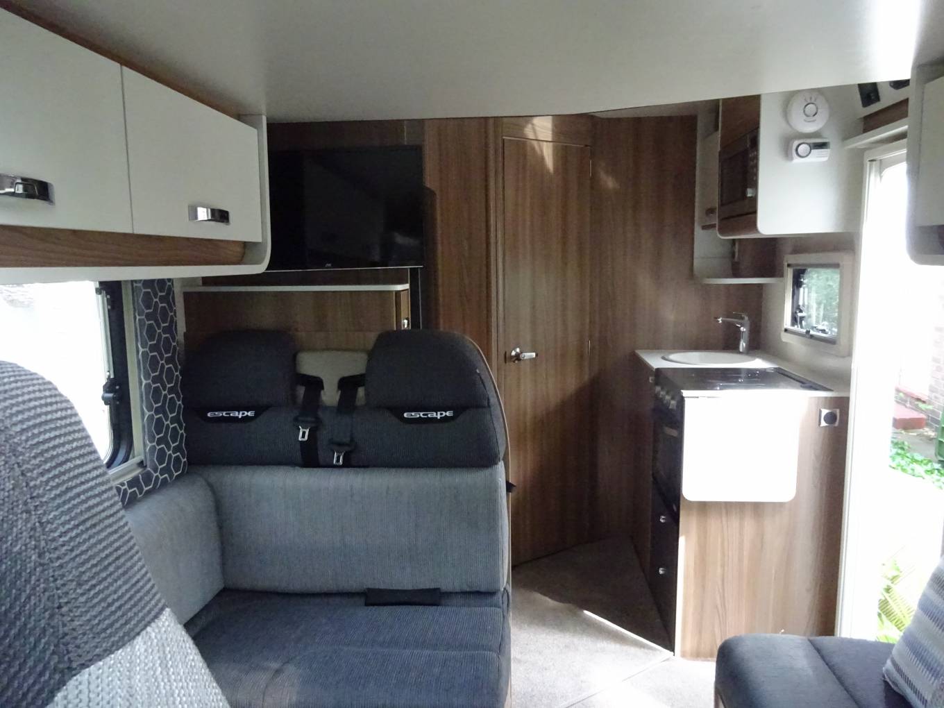 Inside, it’s a great example of how much space can be created within the confines of a Motorhome with a sub-6m overall length. It’s the manually-operated drop-down double bed over the lounge that enables this Escape to make the most of its interior space.