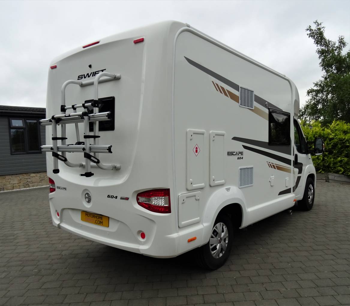 This Swift Escape 604 offers all the equipment you could ever desire, including a bluetooth app to allow the Motorhome to be controlled from your mobile, which is great if you want to turn the awning light and heating on as you return at night. It has been fitted with additional extras of a rear camera, an awning rail, rear cycle rack and comes with a brand new TV, and custom bedding. The interior carpets are in brand new condition as they were lifted and stored when first purchased.