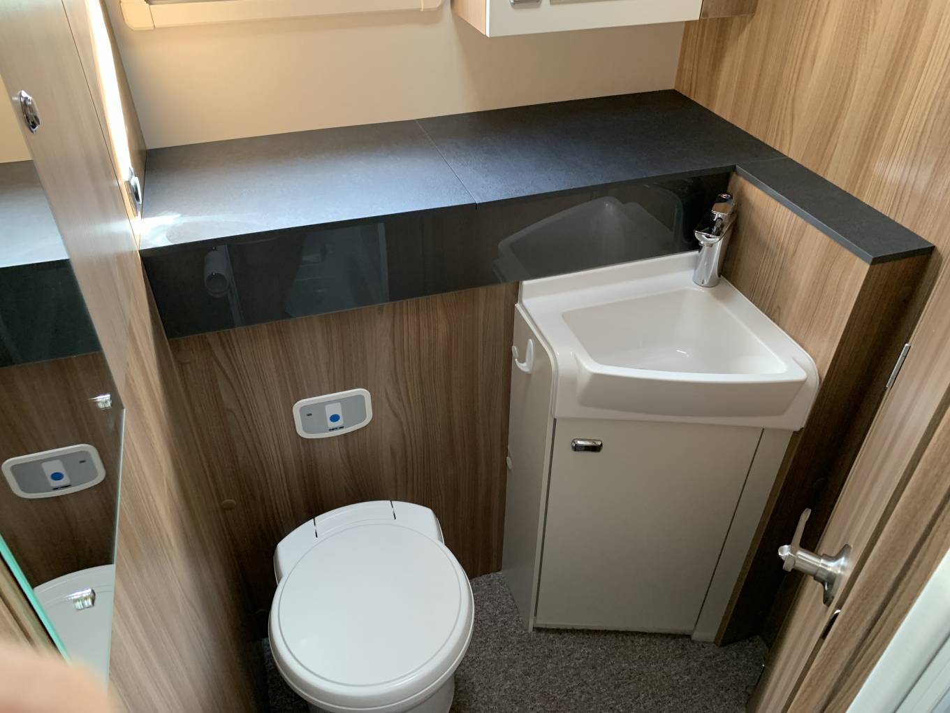 width rear washroom motorhome, it features a large dual access rear garage a pull-down
