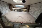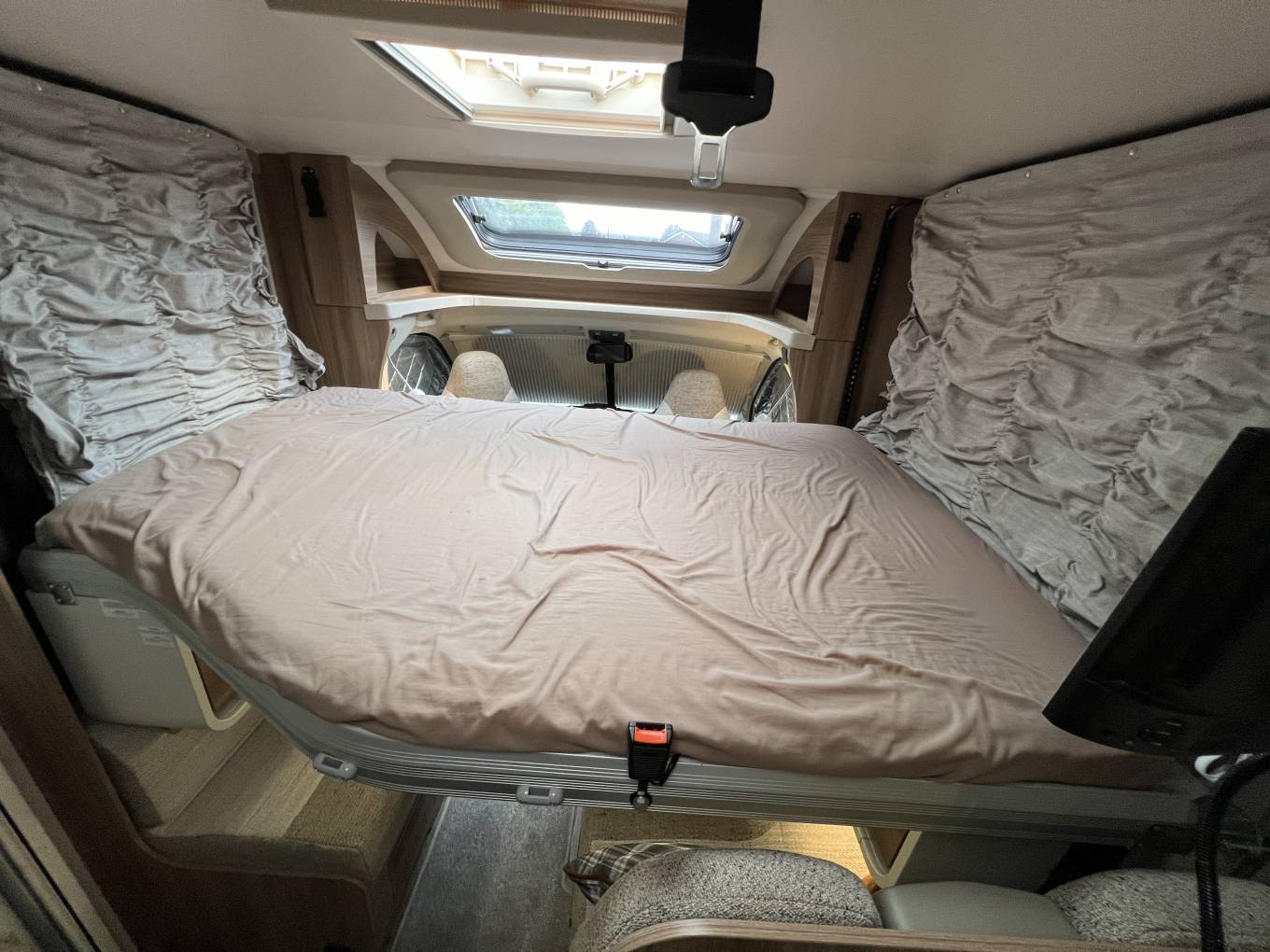 Electrically operated, coming down from the ceiling is the main double bed which measures 6ft 3in x 4ft 1in with a small cutaway at the feet end..