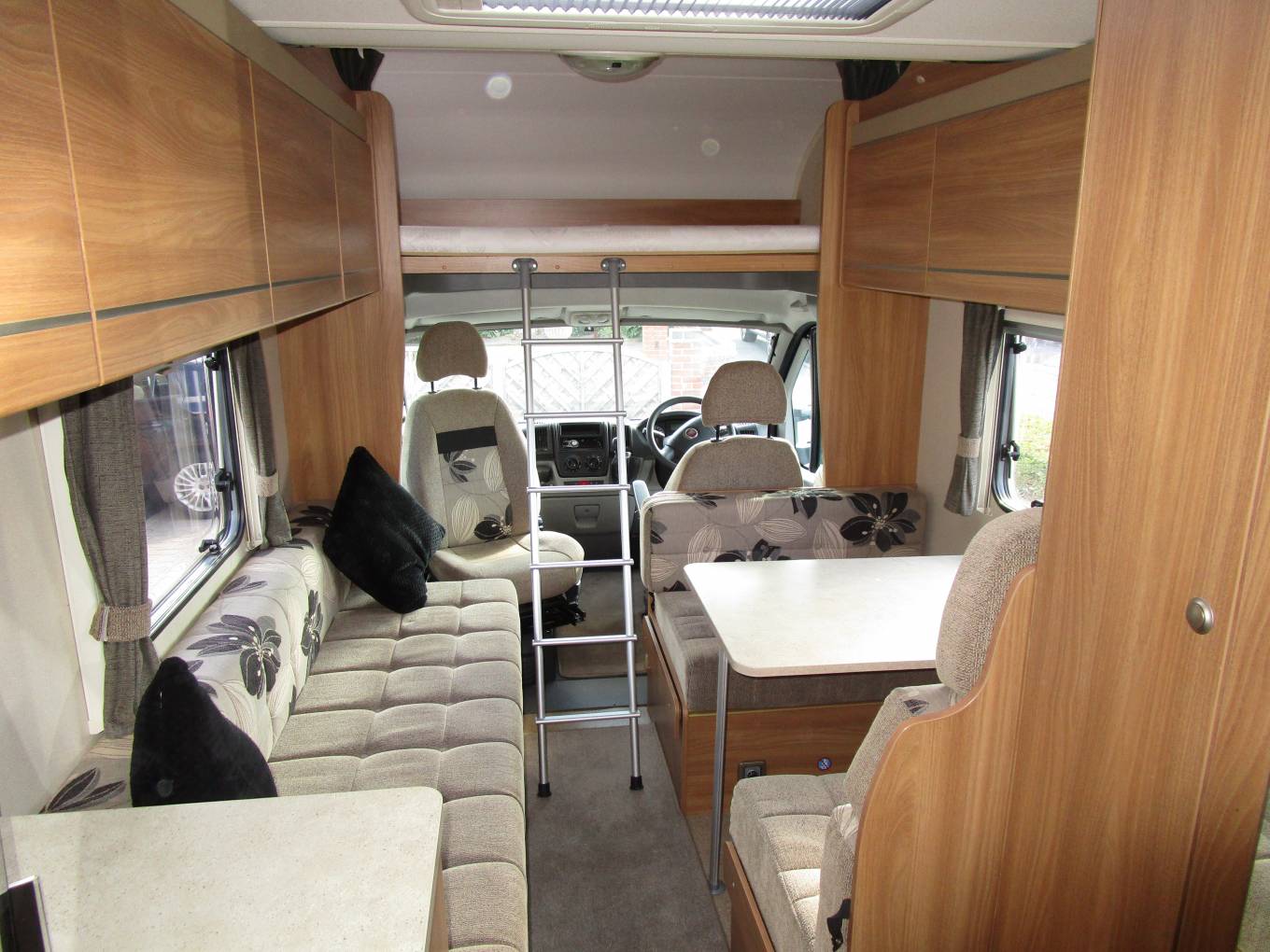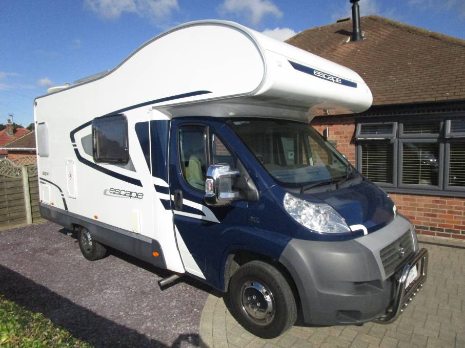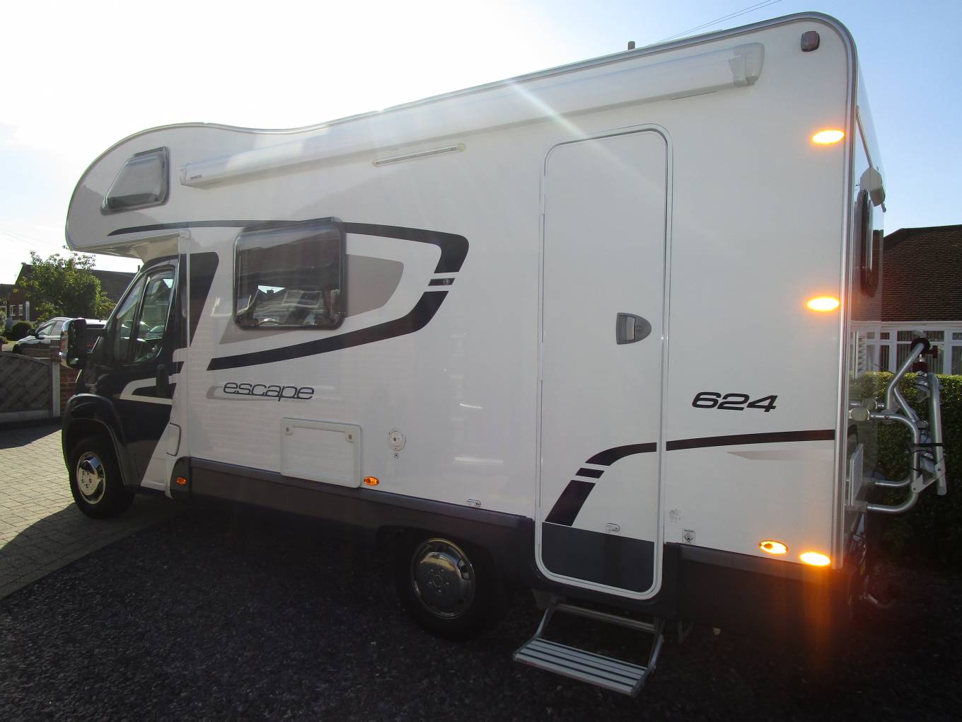Based on the 2.2 Fiat Ducato with a manual gearbox we have this very well presented example of the Swift Escape 624 5 berth family motorhome. The 624 has the perfect layout for a family as not only does it have 4 travelling seat belts it also features three separate sleeping areas. The overcab bed is huge and can be folded when not in use to allow easy access to the cab. The front lounge area benefits from a double dinette that can comfortably seat four or when converted into a sleeping area forms a good sized double, opposite the dinette is a huge bench sofa that can also double as a large single sleeping area. To the rear of the vehicle is a well equipped kitchen with sink, 3 gas burners, oven and grill combination and a generous fridge with ice compartment, next to the kitchen is the washroom that features a cassette toilet along with a hand wash basin and shower. This vehicle also features a Satellite TV system, Solar panel, Bike rack and Towbar. Viewing is a must on this vehicle, for further details or the extended picture file please call Tom on 07572 398972.