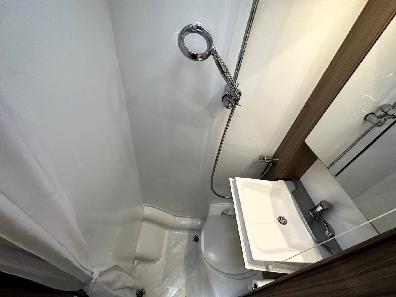 the left with Thetford cassette toilet, drop-down hand wash basin and
