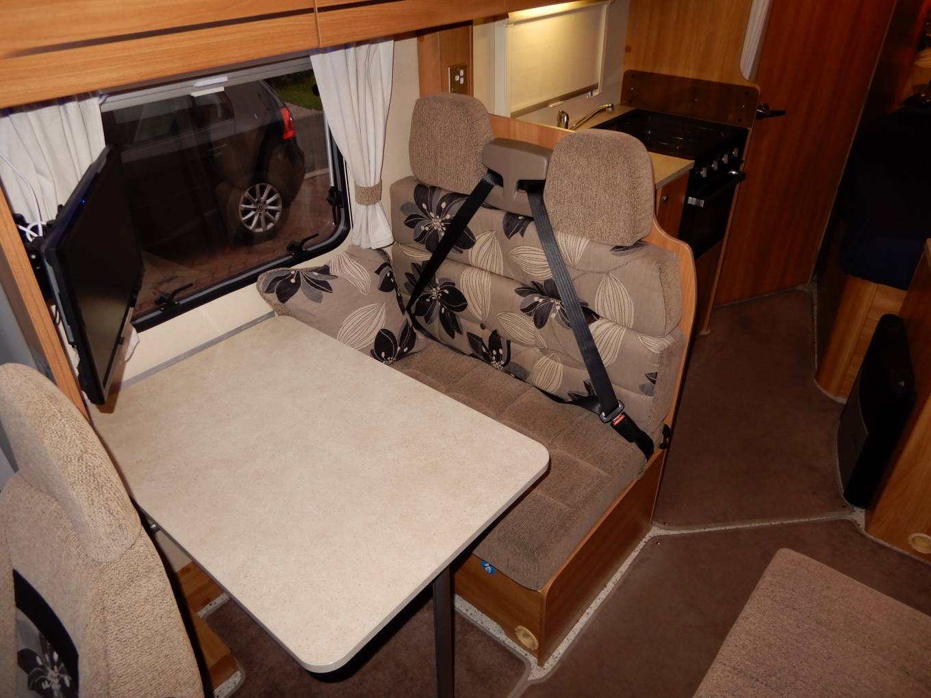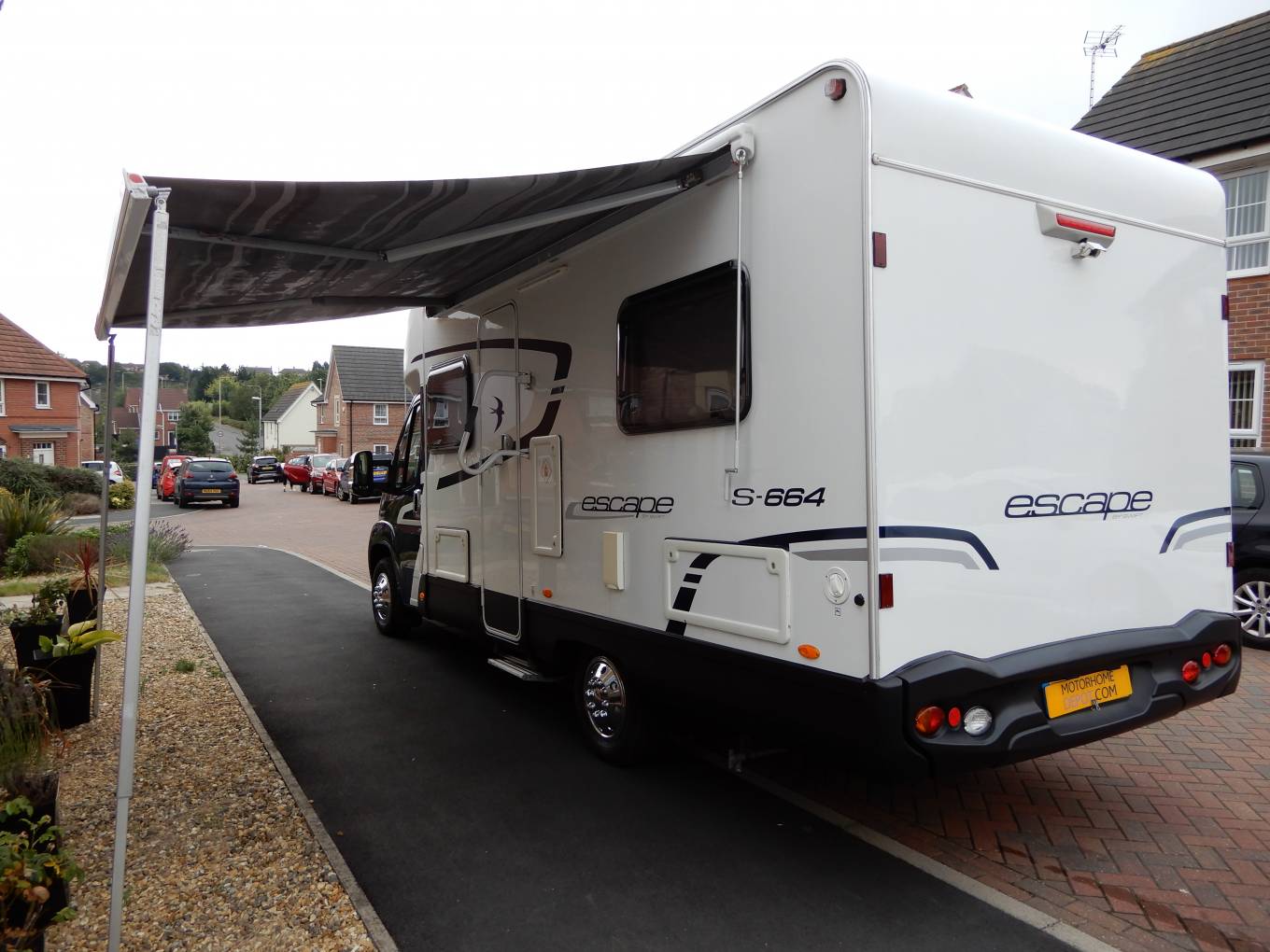 This Motorhome is based in Mansfield here you have a Swift Escape 664, 2.3 Manual, with just 17300 miles on the clock,, full service history and comes with a full habitation check. The cab area offers a clean and modern interior, built in blinds for privacy, electric windows, reverse camera, Tracker system fitted and two swivel seats which turn to a central dining area with a table and two forward facing seats with two seat belts, the bench seating completes a large dining area for a family of four. A TV "included" is conveniently placed for a relaxing family night in. It has remote led lighting back and front. The kitchen area gives you a full oven and grill, plenty of storage above and below, a sink with mixer tap, a 3 gas cooker hob and a 3 way fridge freezer. A gas/electric fire is mounted just below the large wardrobe. The washroom has a cassette toilette, shower and a sink with a mixer tap with a large mirror and storage unit. The bedroom area has a fixed french bed with loads of storage room above and below, The bedroom has a divider for privacy a TV point and TV "included". The external has a electrical water pump to fill the water tank, Solar Panel and storage compartments it has had 4 new tyres fitted and will come with plenty of MOT and a full habitation check. Overall this is a spacious and stylish motorhome perfect for a family of four to have an adventure of a lifetime.