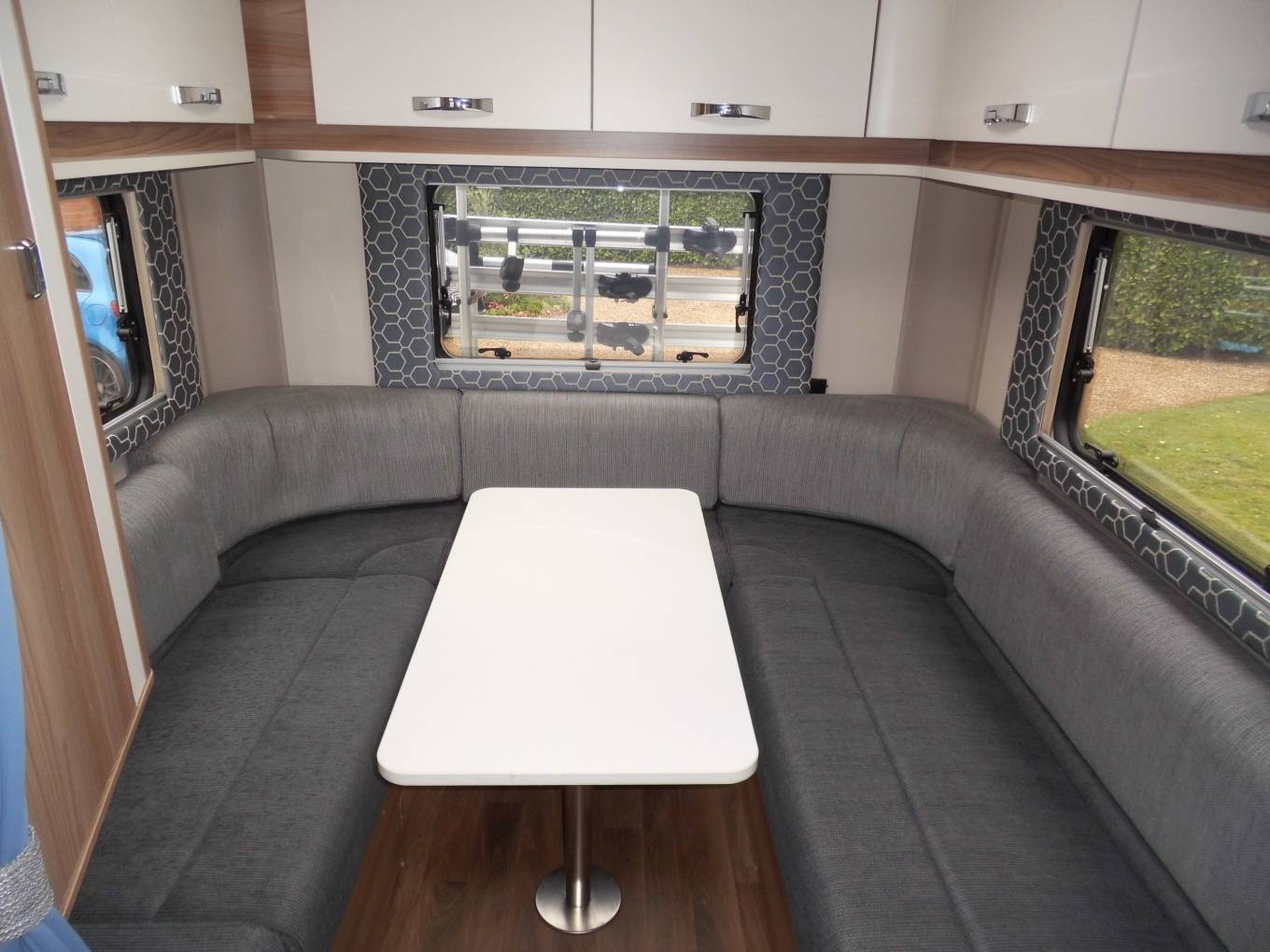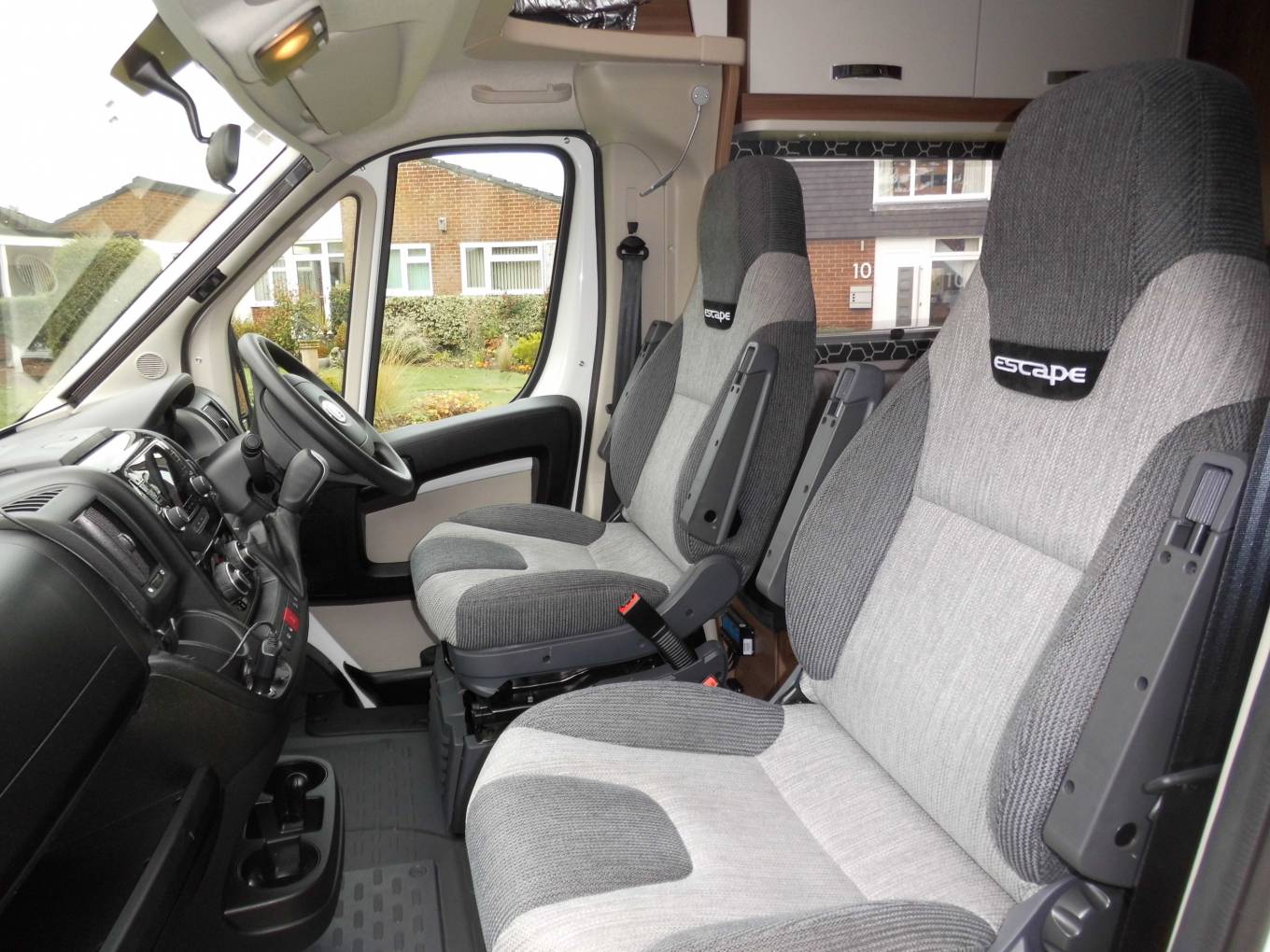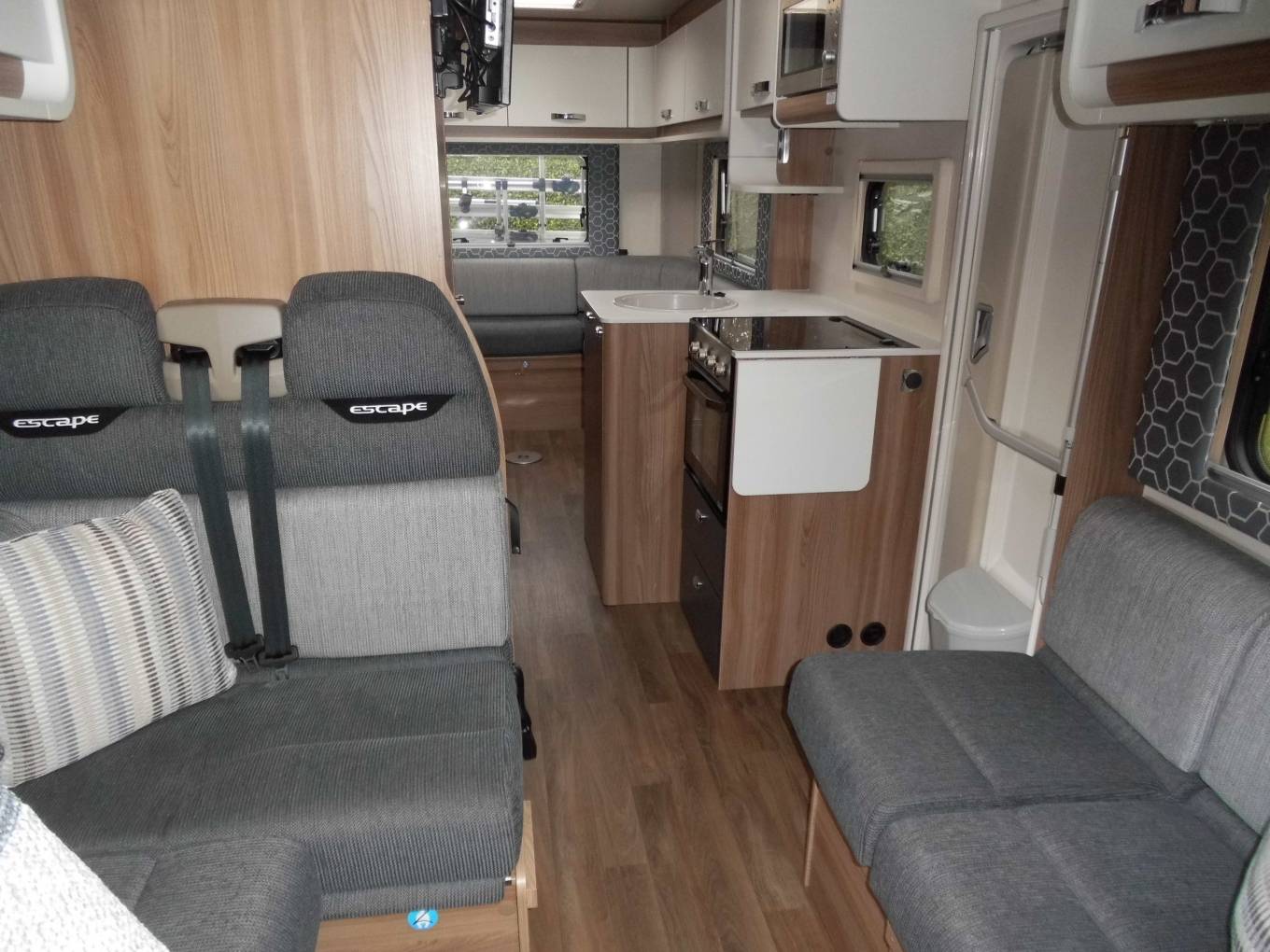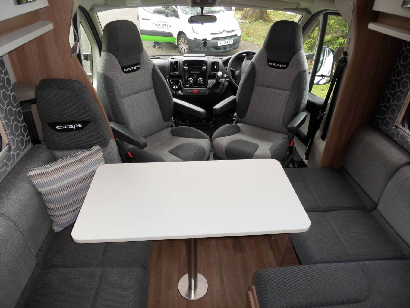 Swift Escape 674 6 berth This nearly new Motorhome with Automatic gearbox, 5 seat belts, Solar panel, 2 leisure batteries. Layout is front lounge dining area which converts to a double bed, centre washroom, central kitchen and rear U shape lounge which converts to a large double bed. Kitchen area has plenty of worktop space including an elevating leaf, sink, hob with 3x gas rings, oven grill, Microwave, a large fridge with freezer compartment, blow heating on gas or electric. There is a standalone dining table which can be used in either front or rear lounge areas. Washroom has Thetford cassette toilet, shower and a sink unit. TV aerial and TV points, LED lighting, window blinds throughout. Other features include swivel cab seats, cruise control, cab air con. Lots of internal and external storage space. Outside the motorhome has twin gas bottles, electric hook up, awning canopy and a bike rack that can hold 4 bikes. Base vehicle is Fiat Ducato 2287cc with automatic gearbox. First MOT due April 2020. This motorhome is covered by the manufacturers warranty until April 2020. Located in Norfolk. For more information, extensive photo file containing approximately one hundred pictures for an in depth virtual tour of the vehicle before you come to view, and to book a viewing, please call Simon or Maria on 01603 381972 or 07757 221350. VIEWING BY APPOINTMENT ONLY. Free 14 day drive away insurance is available with this vehicle. We welcome buyers from across the UK and Europe, low cost delivery is available.