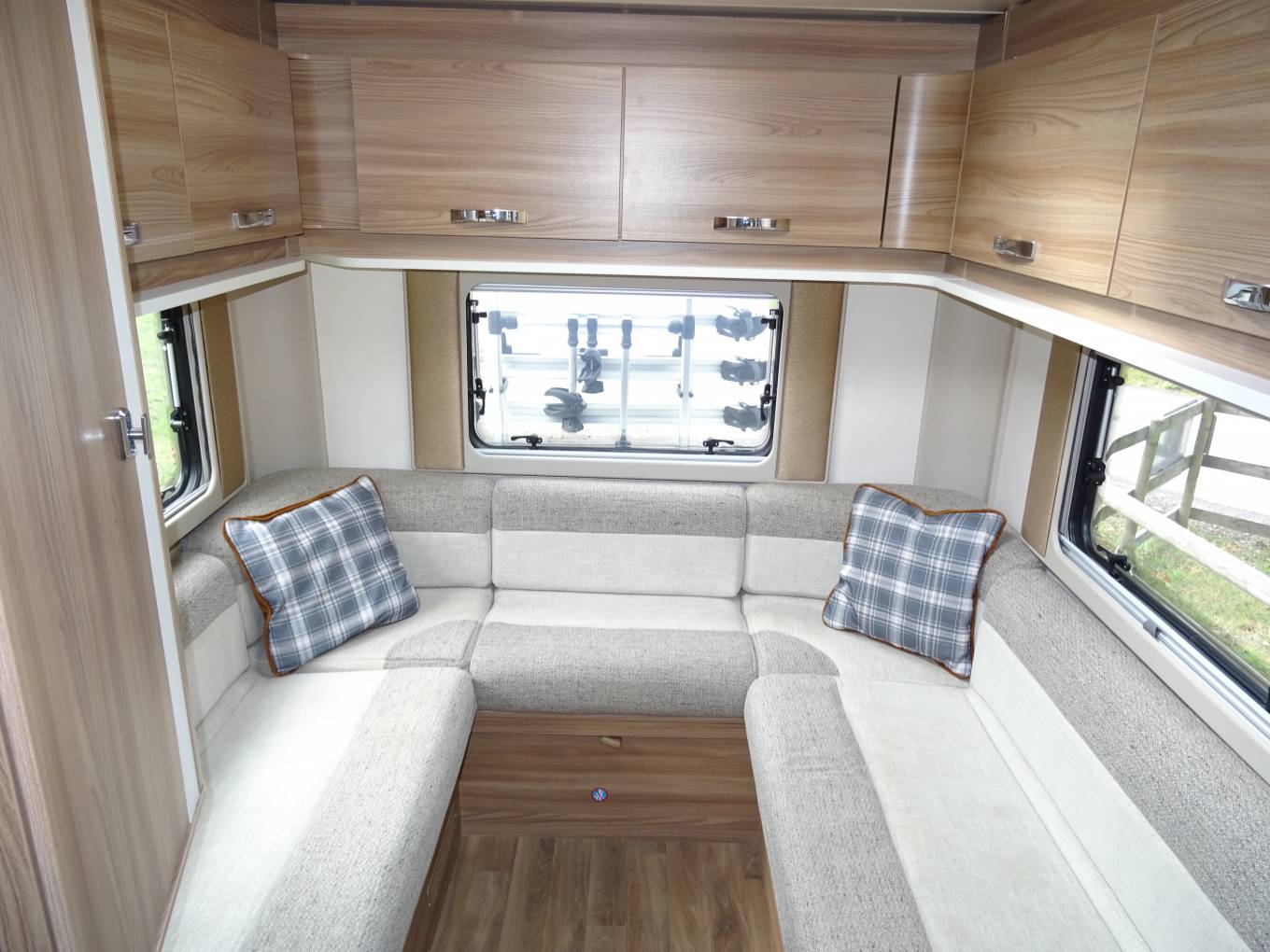 U-Shaped lounge that’s very light and airy, plenty of storage above and