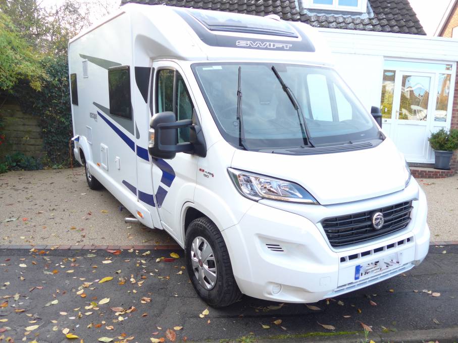 2017 Model (67 Plate) SWIFT ESCAPE 685 Low profile coach built motorhome with REAR U SHAPED LOUNGE for maximum living space with FRONT L SHAPED LOUNGE with SWIVEL Captains seats and Manual PULL down BED over the Lounge . 1 Owner Just 3,477 miles. HUGE saving on new price plus many valuable extraa's. Fitted with optional 'Comfort pack' and ‘Winter pack’. Comes complete with many extras including, Awning, Thule Bike Rack, Avtex Motorhome specific Sat NAV with reversing camera, levellers, 2 Gas bottles, Hook up cable and hose.