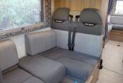 FRONT L SHAPED LOUNGE with SWIVEL Captains seats and Manual PULL down BED over the Lounge. 3 addional travelling seats with 3 point seat belts.