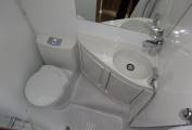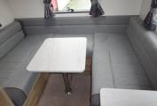As you step in to the motorhome, again you can see immediately the good condition of the motorhome. At the front of the motorhome is a good sized kitchenette fitted out with a 3 burner gas hob, oven/grill, microwave and a nice sized 3 way fridge. there is plenty of worktop and storage space for all your needs. opposite the kitchenette is a seating area to seat 4 including the 3 extra belted seats and a large table. Under the seats are two large storage lockers. Just behind this seating area you find the bathroom fitted with shower, sink and toilet designed to make the best use of the space. To the rear of the motorhome is a large rear lounge complete with another movable table and tv point. With storage lockers above and below the benches, and a large wardrobe there is plenty of space for all the camping essentials. The rear lounge easily makes up in to a double bed, as does the seating area by the kitchenette. With another large double bed above the cab, there is room for all the family.