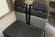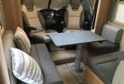 The comfortable lounge and dinette area has a side sofa that all makes up into a second double bed in the evening, all the upholstery is like new and there are upper lockers and under seat storage available. There is a good sized dining table that is multi-positional to cater for all situations.The front cab passenger and drivers captain seats both swivel round to face the living space for socialising and relaxation.