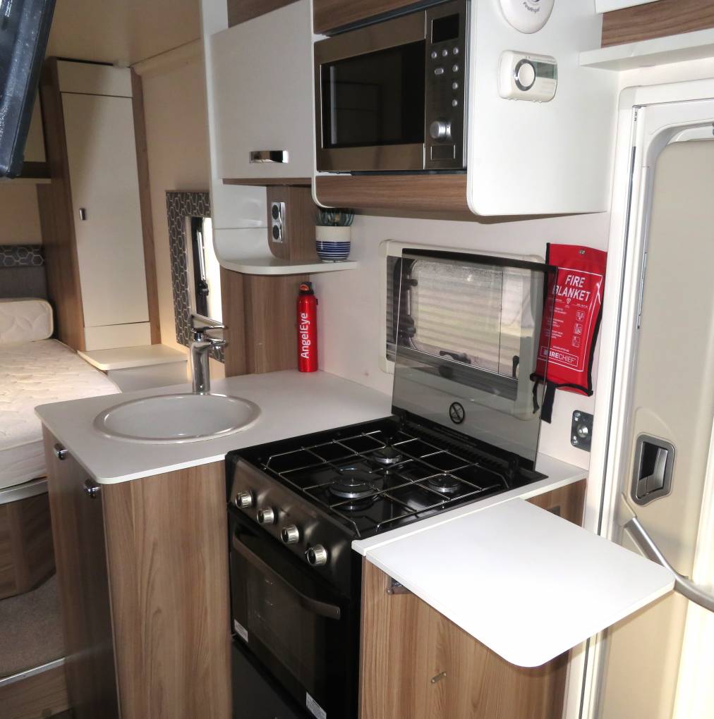 The 694 is a fantastic motorhome to sleep in with the star of the show being the Island bed at the rear. There is also a convenient drop down double bed in the centre of the motorhome and a further double can be made up from the sofas below. This van has a wet room style washroom that has a Thetford flush cassette toilet, sink and shower. Heating and hot water are provided via the Truma I-net system which is extremely easy to use.