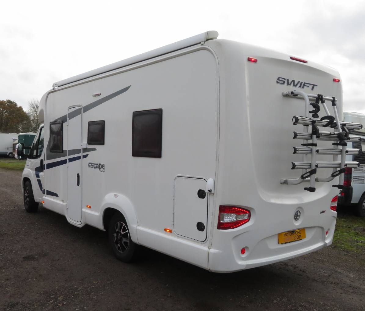 The Swift Escape 694 is a great motorhome that is perfect for a family or couple who may be looking to travel overseas. The van has many standout features which include the Island Bed at the rear, spacious lounge at the front, further sleeping for up to 6 people in total, all in a van that has a semi-automatic gearbox and at 3500kg can be driven on a standard UK driving licence. This particular van is presented in really nice condition and comes with lots of extras.
