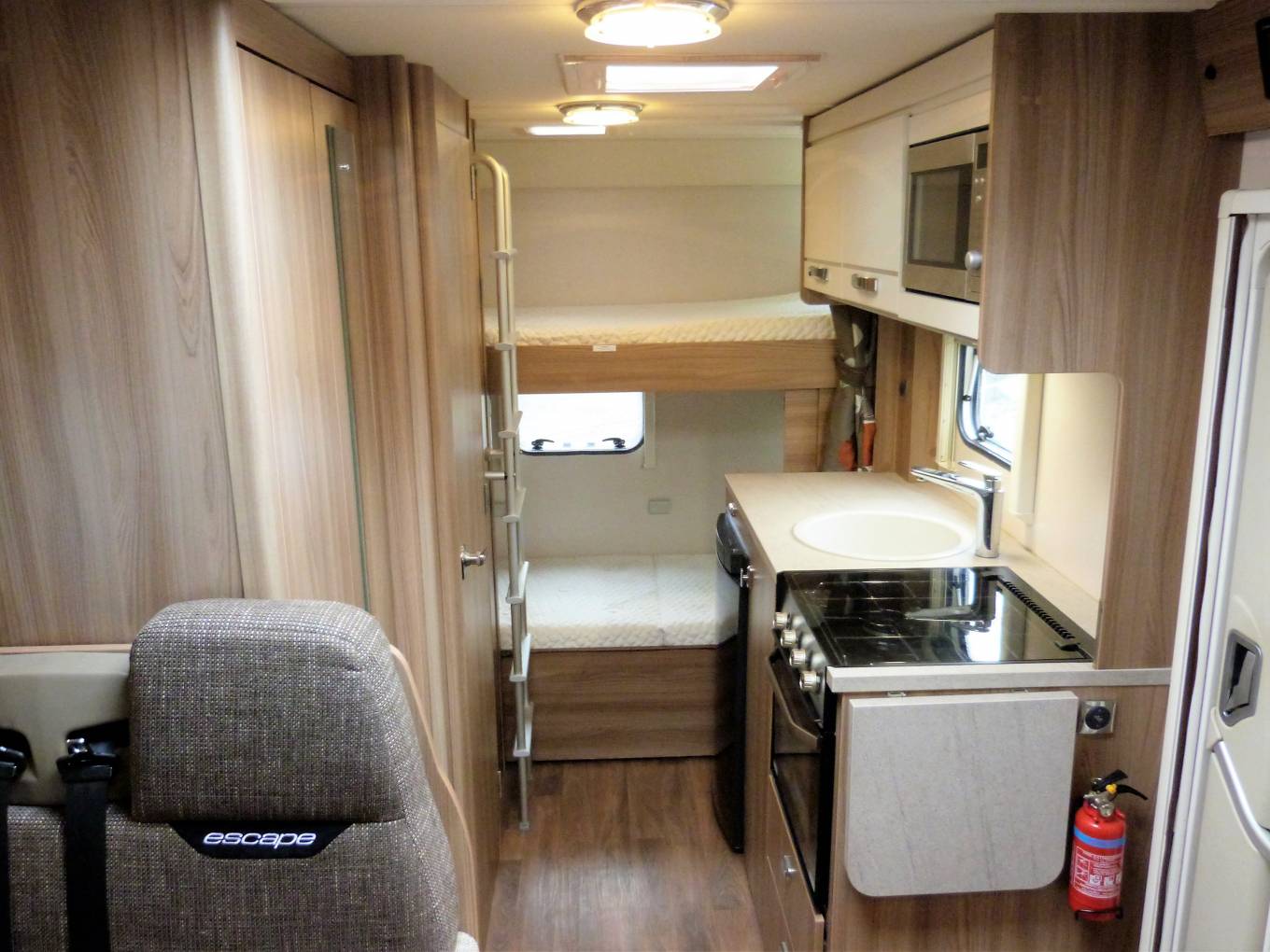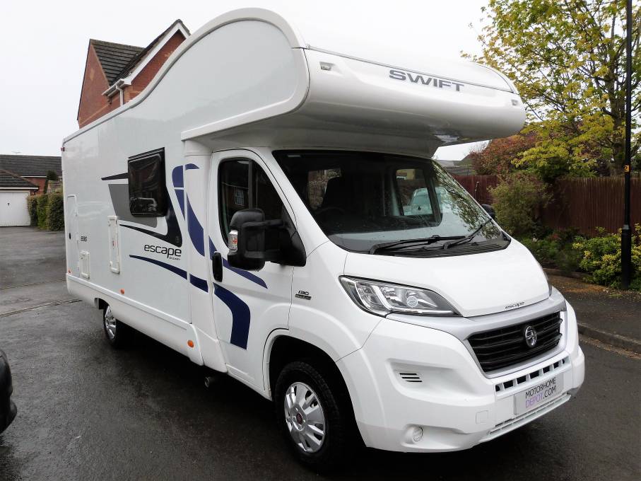 Call with any questions 01423 609985. This 2016, 6 berth, coachbuilt, Swift Escape 696 is a great family motorhome, in good condition inside and out. It has 6 berths, and potentially 7, with an extra berth being created by the sofa on nearside and dinette on the offside, which becomes a large bed. Typical of 6 berths, there are the bunk beds at the rear, the lower of which can be raised to create a large garage; washroom with shower, well presented kitchen, centre dinette with 2 forward seatbelts and 1 rear facing seatbelt and large overcab bed. It comes with recent service, MOT to May 2024 and habitation report, its ready to go. Built on a Fiat Ducato chassis, it has the efficient and powerful 2287cc engine matched to a 6-speed manual gearbox and has travelled just 20,464 miles. The GVW is 3500kg, hence 5 seatbelts only and anyone can drive it. At the rear are 2 long bunk beds, which are just over 7 feet in length so adults can sleep here if required. The lower bunk can be raised to create extra storage for bikes and any other camping equipment. The washroom is generous in size, with toilet, sink and a shower attachment. The kitchen is well equipped, with Thetford cooker comprising grill and oven, 3 gas burner hob, plus Dometic 3-way fridge with separate freezer plus sink and microwave. A pop-up worktop, next to the habitation door, provide extra food preparation area. The dinette is extensive and light, with large windows allowing plenty of natural light to enter. There are 3 full seatbelts, in this area, so everyone travels safely. This area can be made into a free-standing double bed. Opposite is a long sofa, which could be used as a single bed, or joined to the dinette, to create 1 large bed. You can also make this area into "virtually" a U shape lounge, so when combined with the table extension, up to 8 people can be seated comfortably together. Upfront, there is cab air conditioning, 6 speed manual transmission and radio/ CD with Bluetooth. The overcab bed, can be easily raised, to create extra headroom space when driving. Nice additional features include Remis blinds on the front windscreen, towbar, thermal blinds for side windows, 4 all-terrain tyres, which are hardly used and upgraded leisure battery. For security, there is an immobiliser system, for heating a Truma system, for entertainment a Wi-fi router has been fitted and when out and about, a Fiamma wind out canopy and bike rack. This is a lovely family motorhome and should be seen at the earliest opportunity, with viewings by appointment in Ripon, North Yorkshire. Part Exchanges welcomed on this vehicle, for further information and photos please call us on 01423 609985 quoting reference 212358