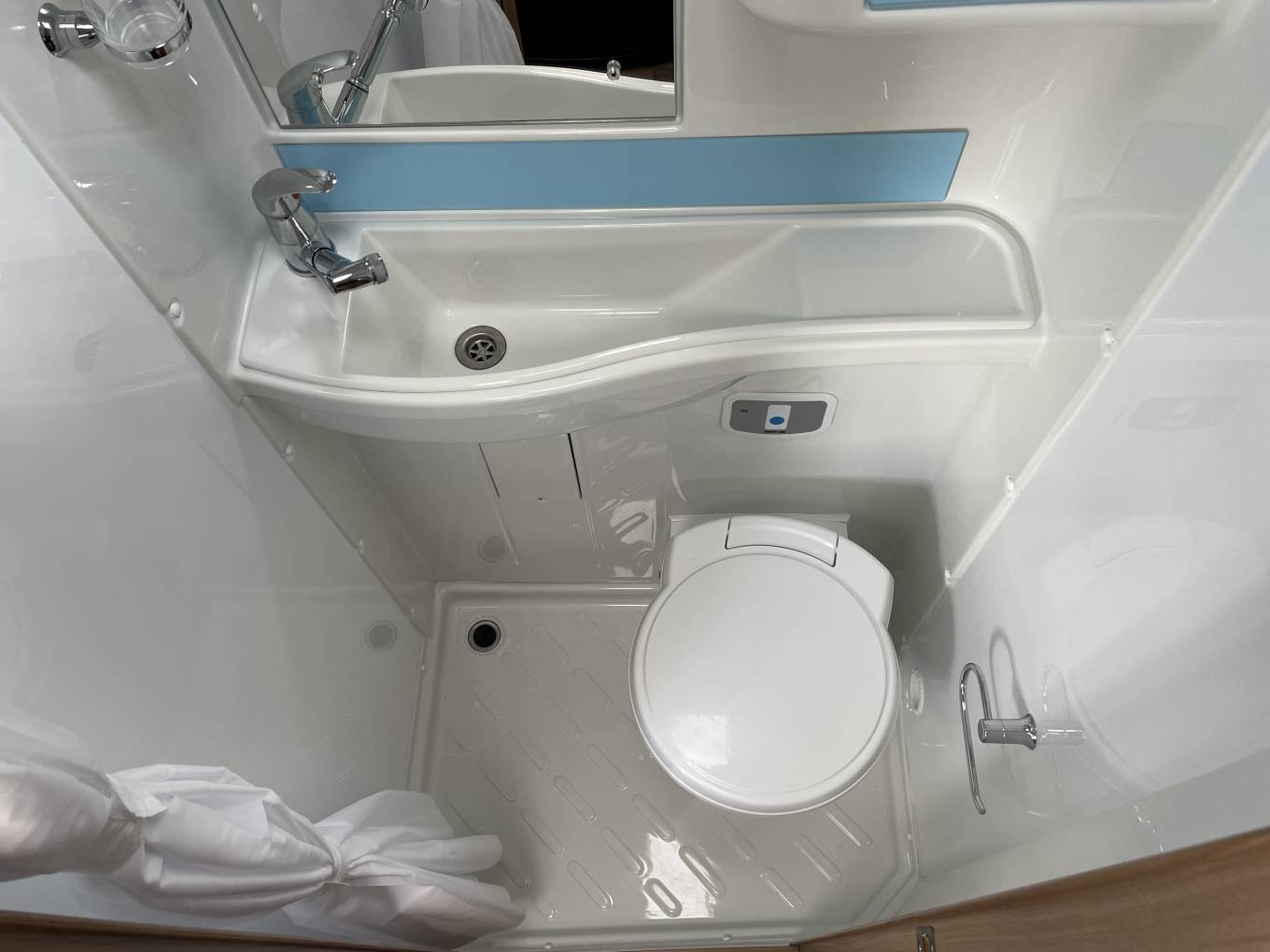 central washroom has everything you need with, a shower, Thetford w/c, wash