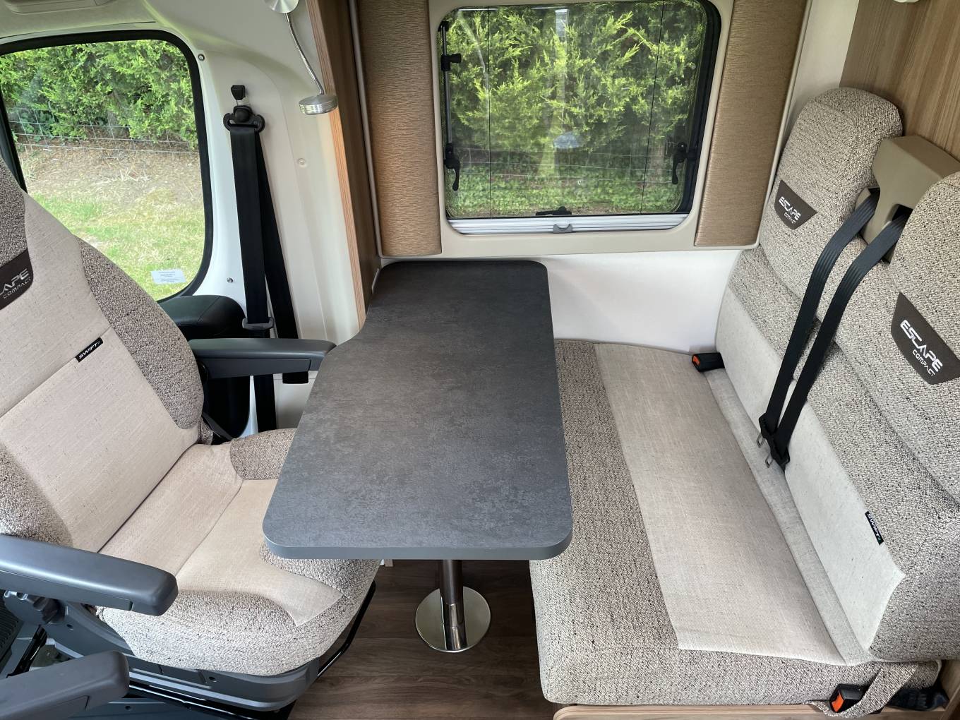 other seating/dining area at the front of the motorhome has two swivelling Captains