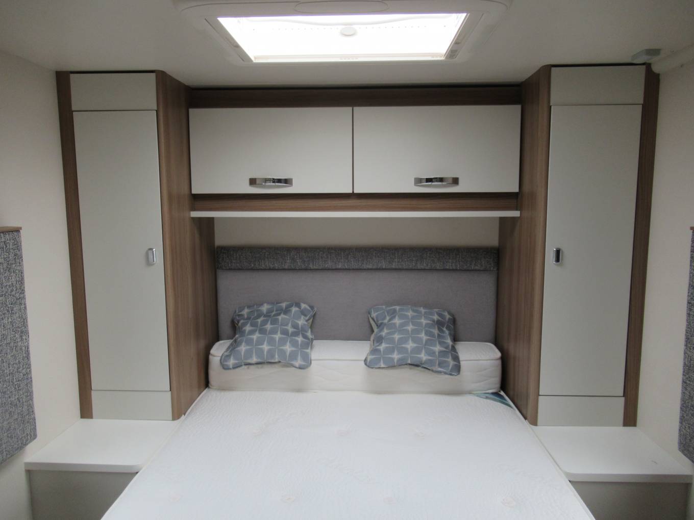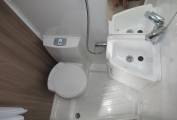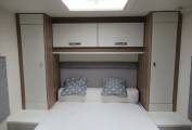 At the rear is a very Comfortable Fixed Island Double Bed. The Bedroom area has lots of storage options with both stylish wall units and a huge area under the bed (This can be accessed from both within and outside of the vehicle)