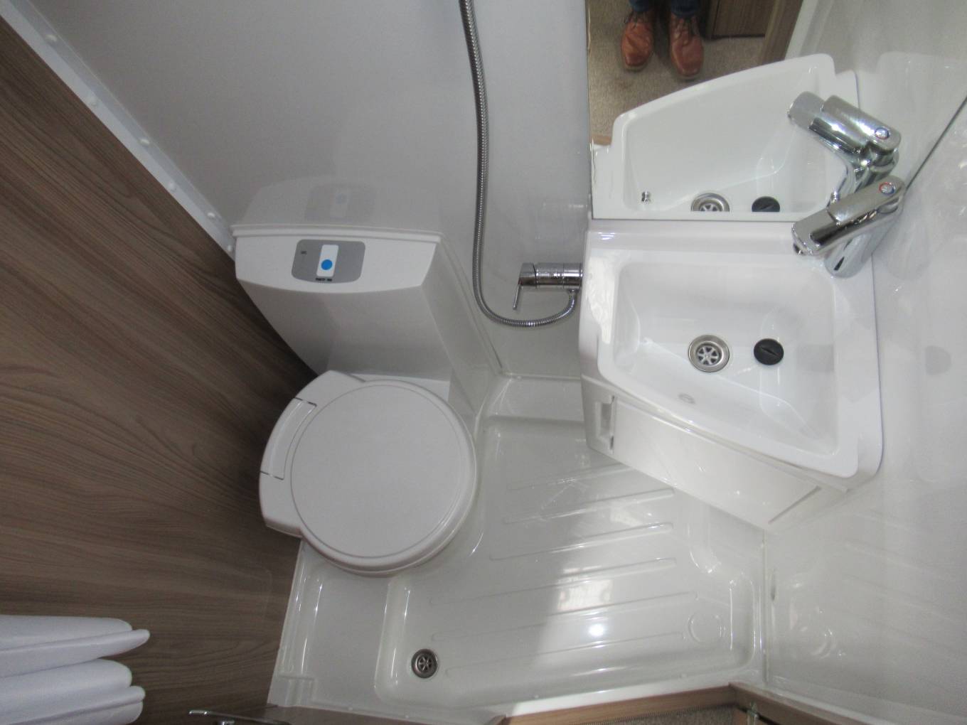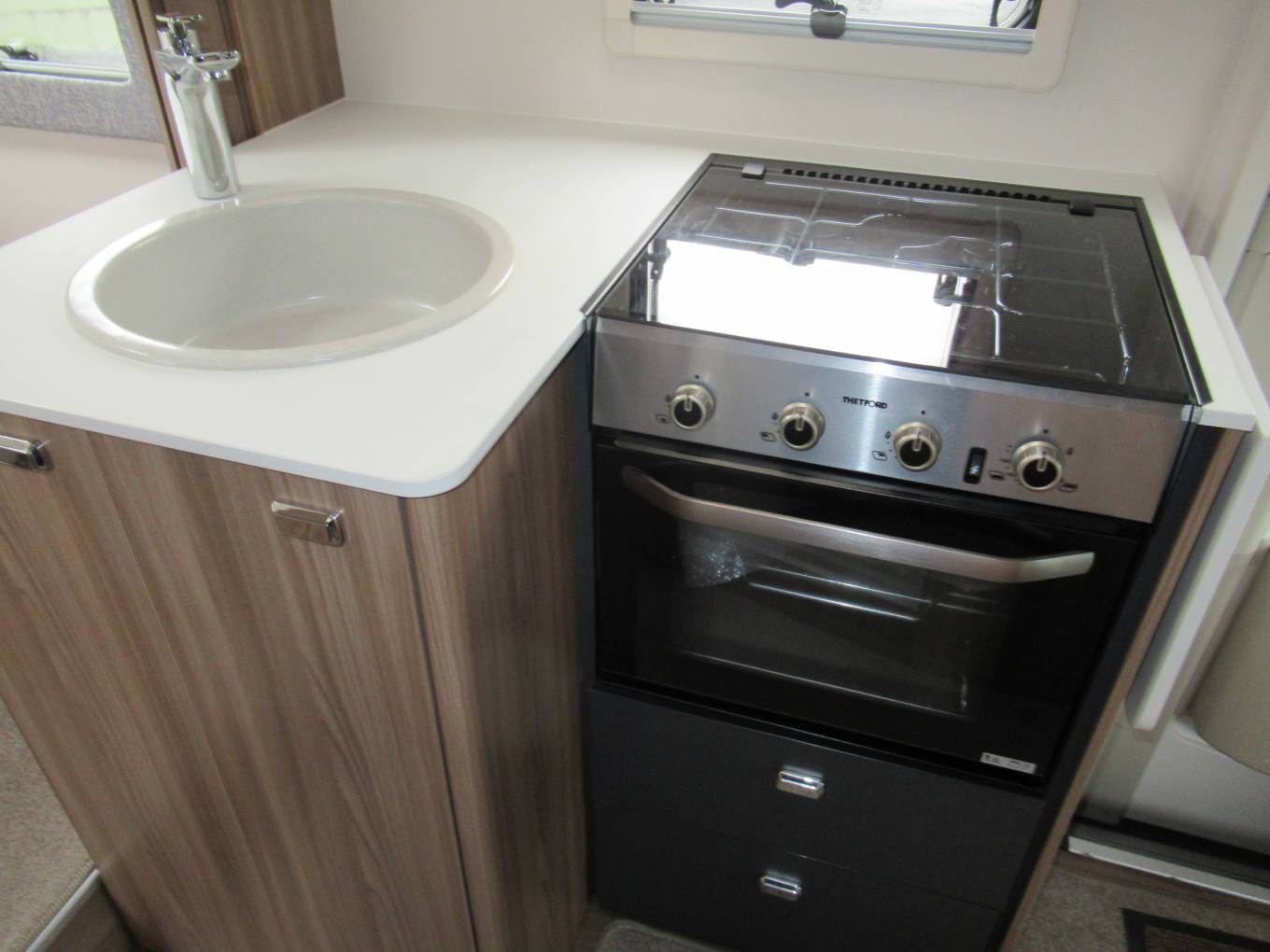 The modern Kitchen is well equipped and boasts a 3 burner gas hob, Thetford Combi Oven/Grill, Microwave, Sink and Dometic fridge with Integral Freezer.