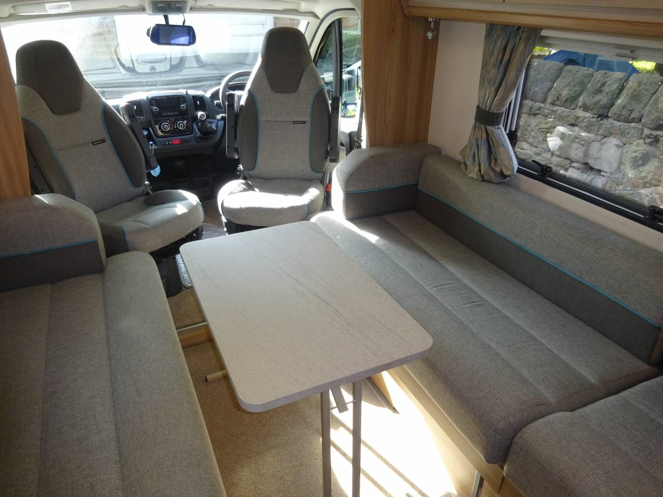 Overall a lovely motorhome, the mileage is 11480. Two owners, current owner last three years. Please note a fresh MOT will be done before sale. In the cab we have two swivel seats, concertina blinds for windscreen and side windows, reversing camera, electric front windows and driving mirrors, cup holders, USB & Aux sockets, Outside there is an Thule 4.0m awning, a storage locker and a bike rack. One gas bottle, a hook up lead and two ramps included.