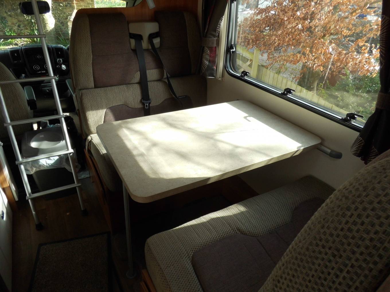 Great family motorhome this really is well designed for family camping Six berths, six travel seats – front dinette with four travelling seats, centre kitchen and washroom, rear wrap-around seating. High-line roof profile. Entering this spacious family motorhome we have to the left the kitchen area with dining area opposite that provides bench seating this also converts to a sleeping area for two persons. kitchen area is well equiped with lots of kit. The fridge is a decent size, with an ice box and Automatic Energy Selection. Cooking is by full-sized stove and a smart stainless-steel microwave. The sink is stylish too, executed in cream GRP and with a drop-in chopping board and removable drainer. Heading toward the rear we find the spacious washroom with a seperate shower area, room to move around in here. Rear lounge that offers plenty of comfort and space with T.V self seeking satelite that offers various chanels, good storage in this area via overhead cupboards. Solar panel offers off grid power option. All in all great stylish vehicle well equiped for Family fun. Mirror guards, bike rack, T.V with satelite system, reversing camera.