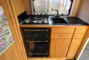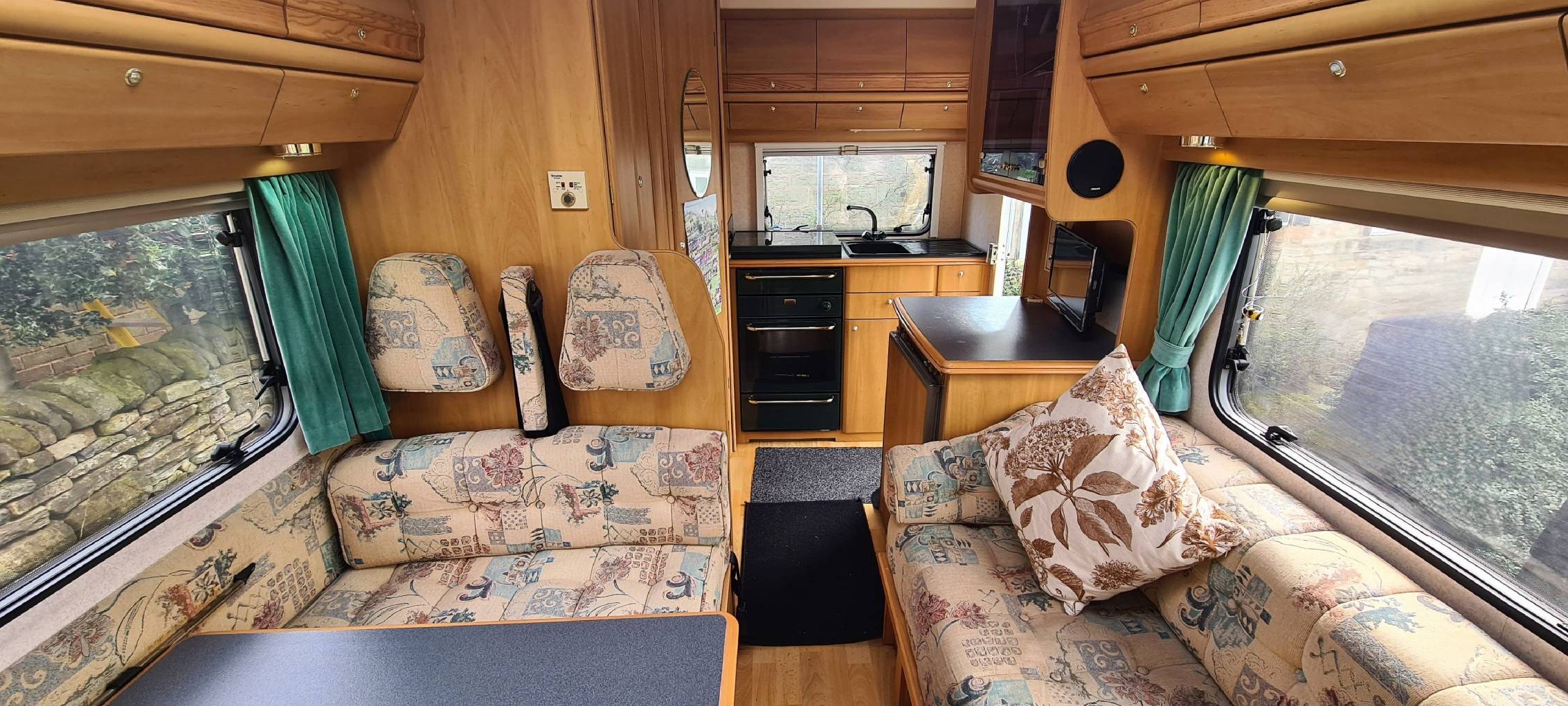 To the front of the van you will find a 4 way dinette with a side facing bench, a large table and further cupboards above. This area can be converted into a single and smaller double. (photos attached)