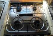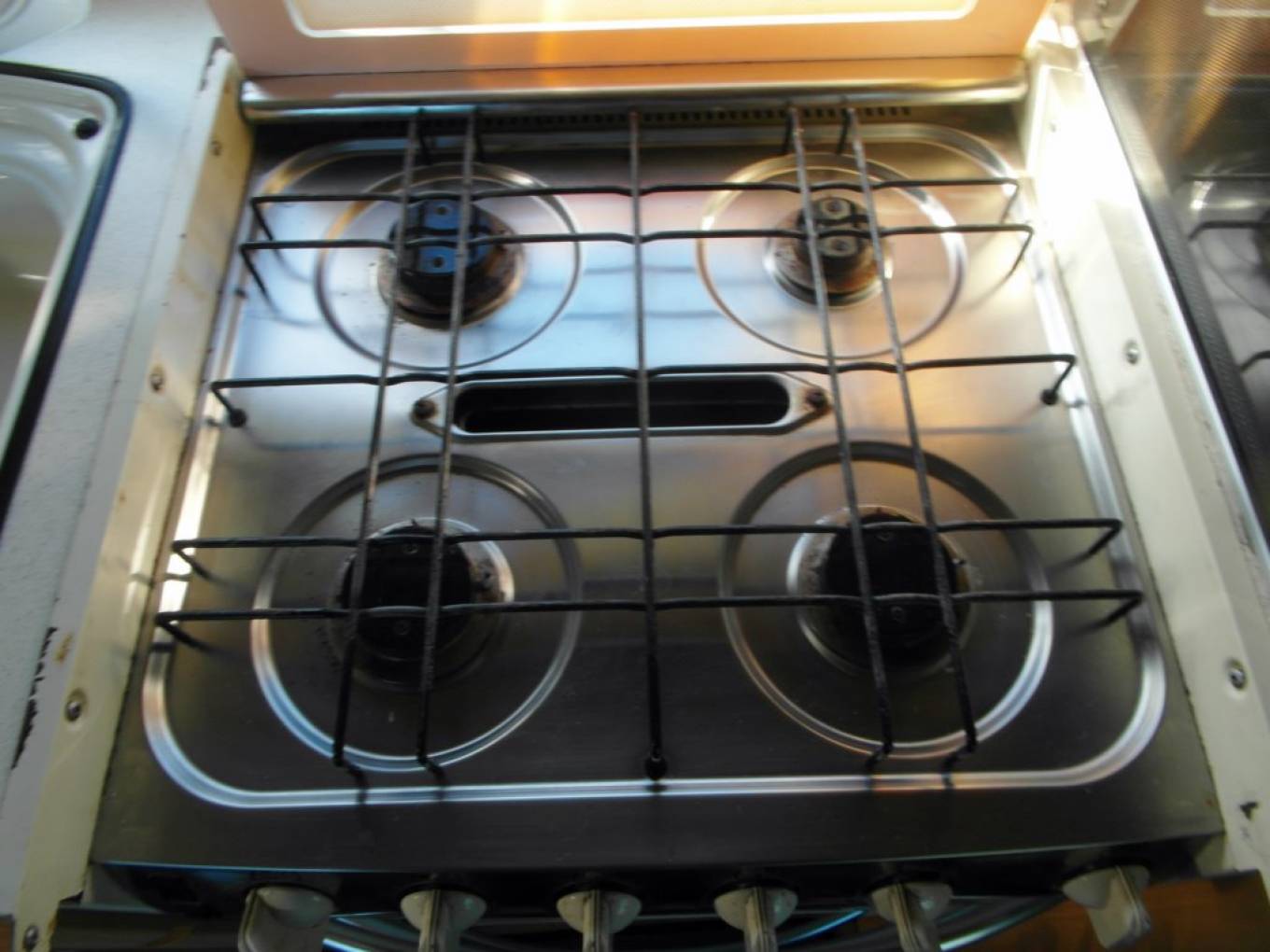 with fridge freezer, sink, drainer, grill, oven and gas hobs x4.