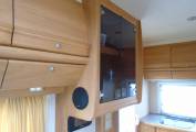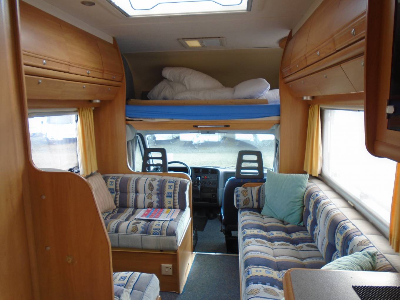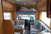 There is an above cab double bed with the seats making up into two single beds, large dining area and lovely shower /toilet cubicle.