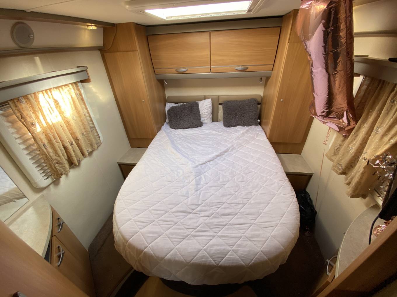 Above the cab is another foldaway double bed which can be curtained off.