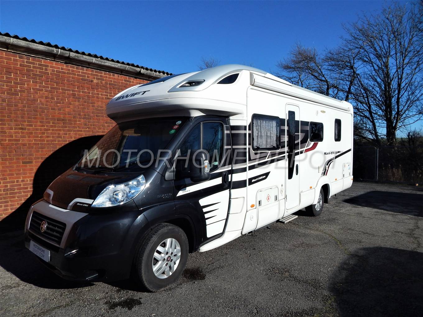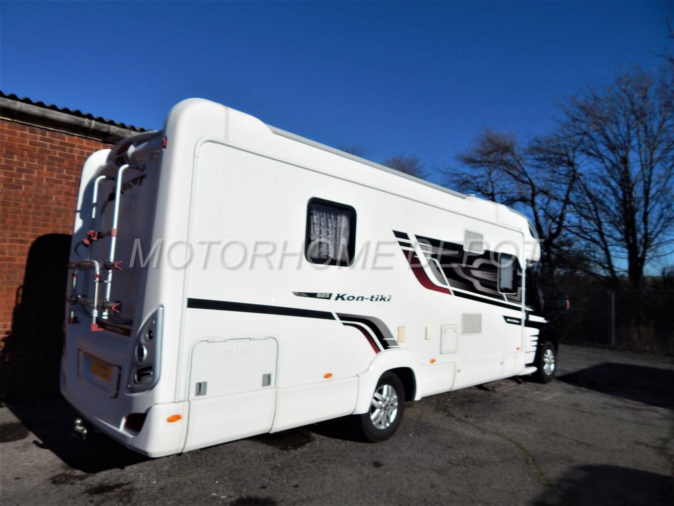 This Stunning Black Edition version of Swifts ever popular Kon-Tiki 625 model. This really is a fantastic family motorhome having 4 berths and 4 travelling seats. Based on the ever popular Fiat Ducato chassis with the 2.3 TDI multijet engine with an output of 150 bhp and a manual 6 speed manual gearbox. First registered on 12/06/2014 and having only covered 16198 miles. It comes with a comprehensive Service history both mechanical & Habitational. It will be supplied with a new Hab check being done on the 26/01/2021. The Cab benefits from: cruise control; air conditioning; electric & heated mirrors; electric front windows; multi function steering wheel; central locking; remis blinds to front and side windows; dual camera rear view mirror; factory fitted CD head unit incorporating Bluetooth connectivity for your phones & streaming.