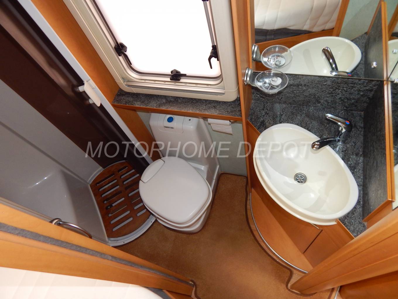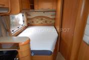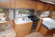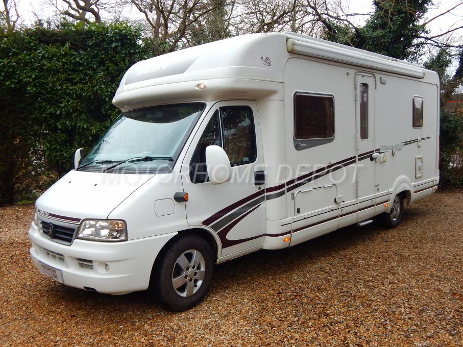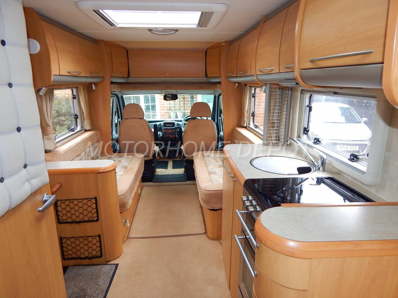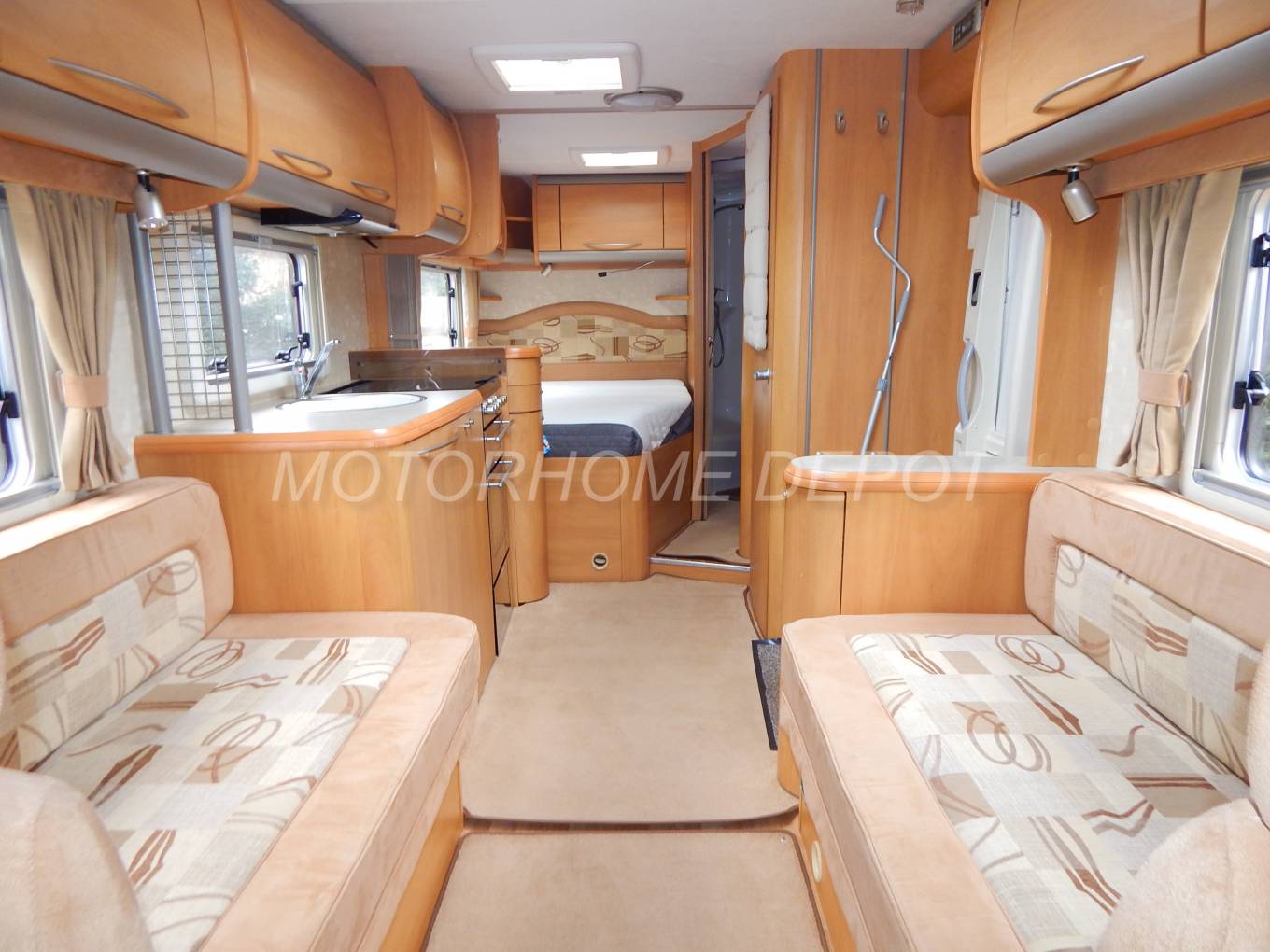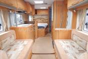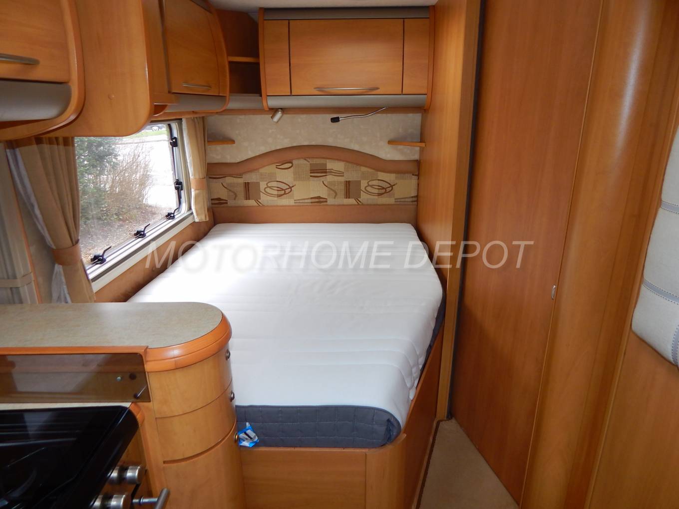 - The main feature is the rear fixed double bed, which raises to reveal a large storage area, which can also be accessed via an external locker door. There is a sunroof and a window providing plenty of light, upper aircraft style lockers and a TV cabinet with concertina door.