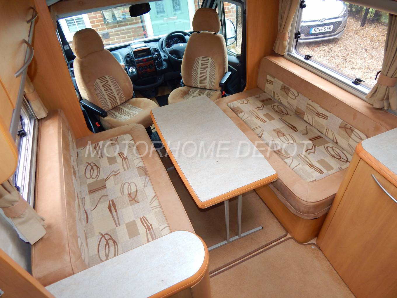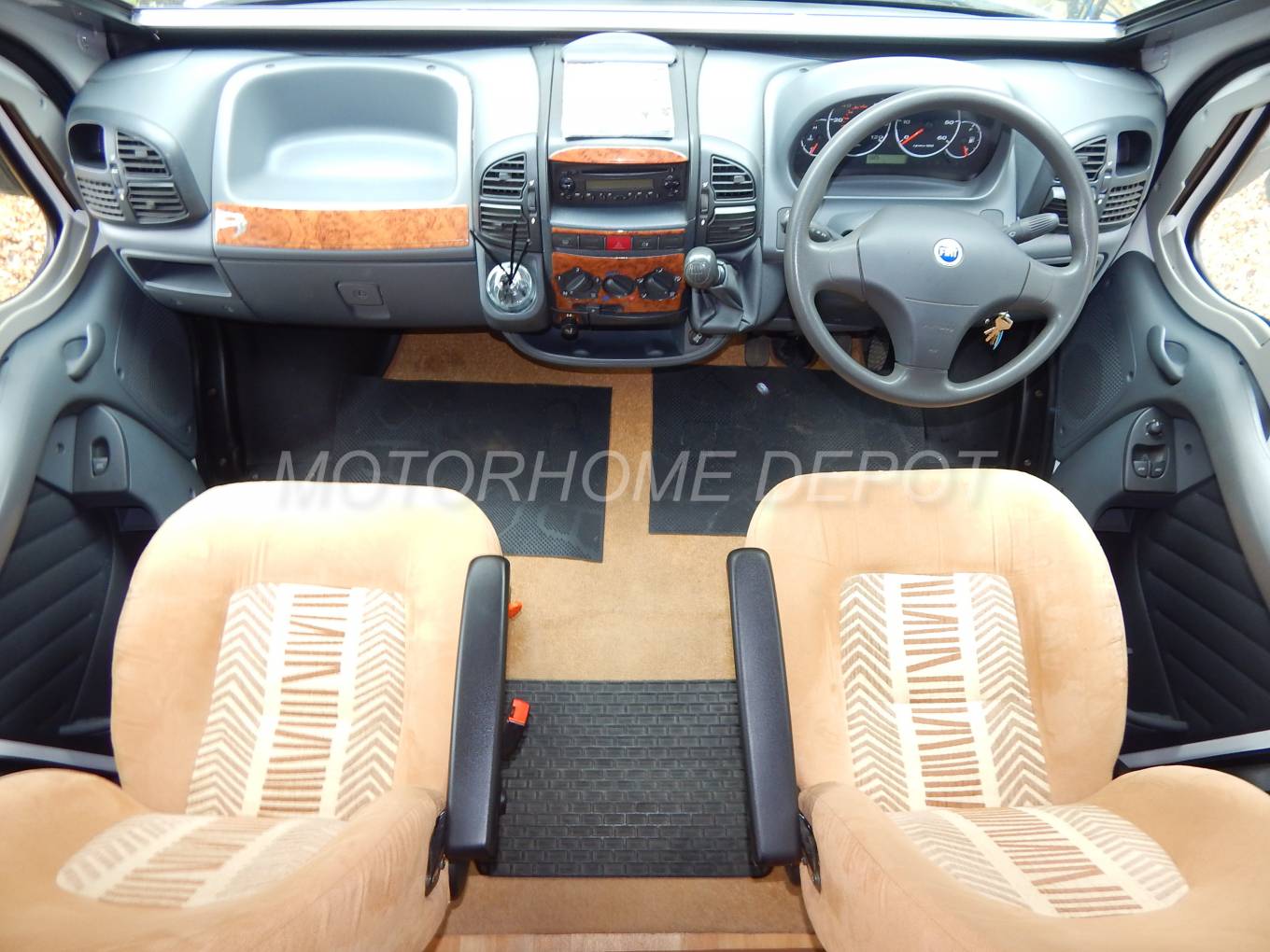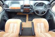 a CD Tuner, reversing camera monitor, two swivelling seats, built-in privacy blinds to the windscreen and