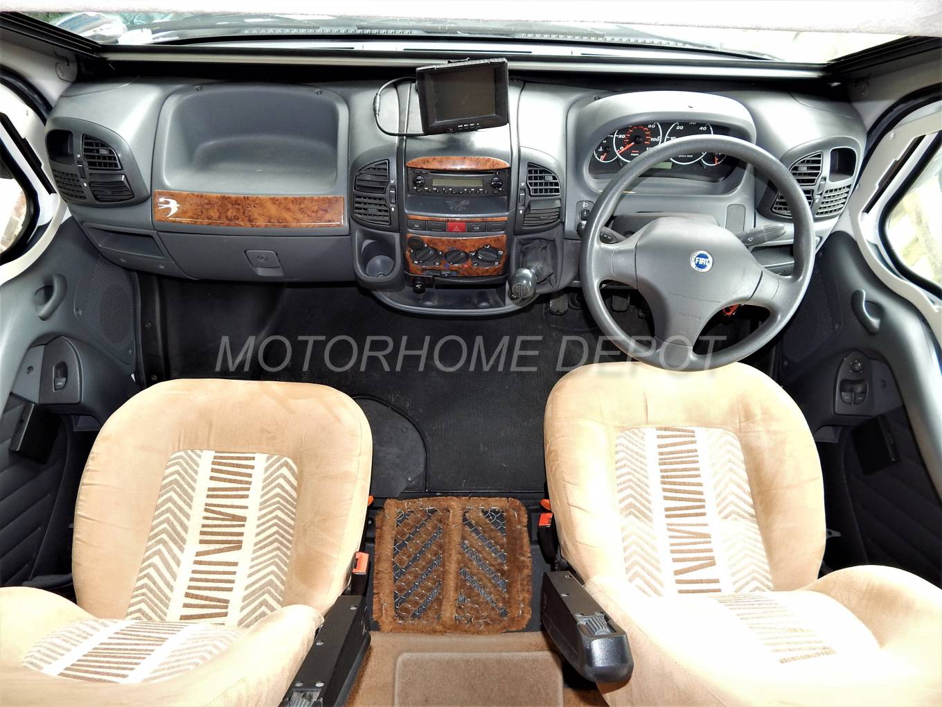 Swifts Kon-Tiki Vogue 655 with the 4 berth & 4 belted seats! Based on the ever popular Fiat Ducato chassis with the 2.8 Td engine and a 5 speed manual gear box. The vehicle has only had 2 owners from new and comes with a good service history last big service at 03/20 29989 miles included Front Disks & pads + full Cam Belt kit. This vehicle also had a new engine 2014 at 22k miles, so has only covered 10k since. The cab benefits from: power steering, central locking front; Electric windows front; electric heated mirrors; cup holders; full width front blind; side window blinds.