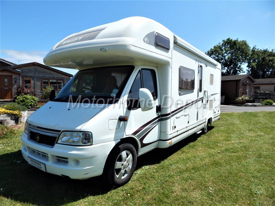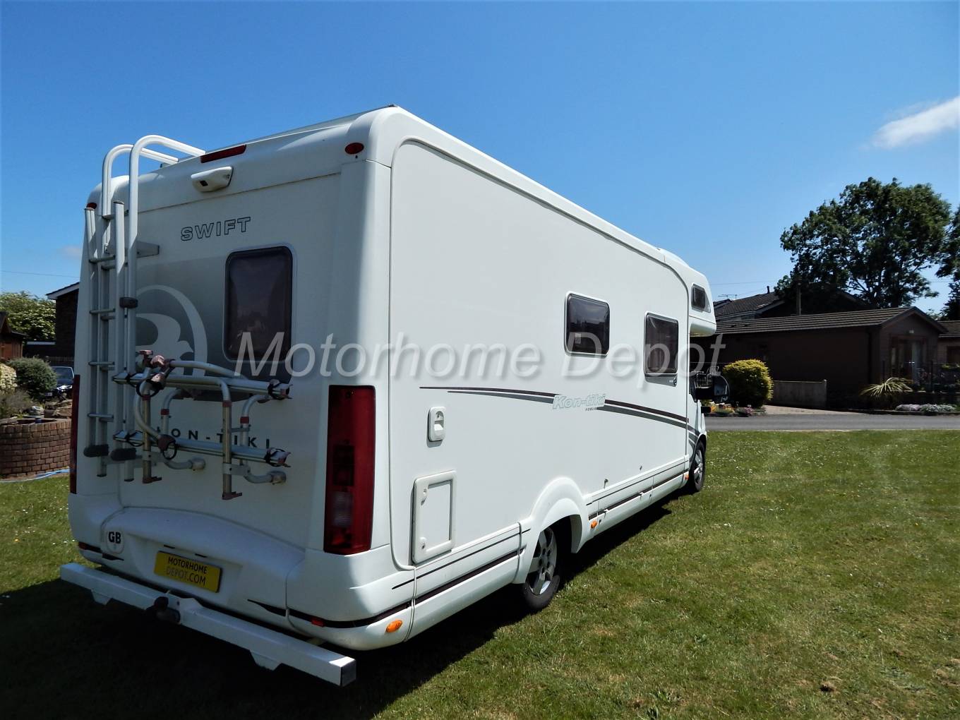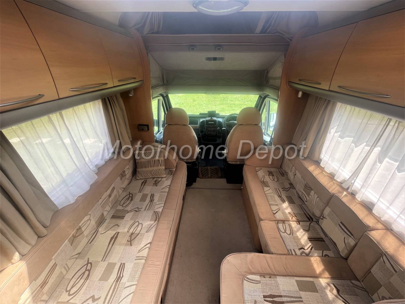 Swifts Kon-Tiki Vogue 655 with the 4 berth & 4 belted seats! Based on the ever popular Fiat Ducato chassis with the 2.8 Td engine and a 5 speed manual gear box. The vehicle has only had 3 owners from new and comes with a good service history last service at 05/22 32806 miles, The previous included Front Disks & pads + full Cam Belt kit. No recent Habitation check. The cab benefits from: power steering, central locking front; Electric windows front; electric heated mirrors; cup holders; full width front blind; side window blinds.