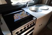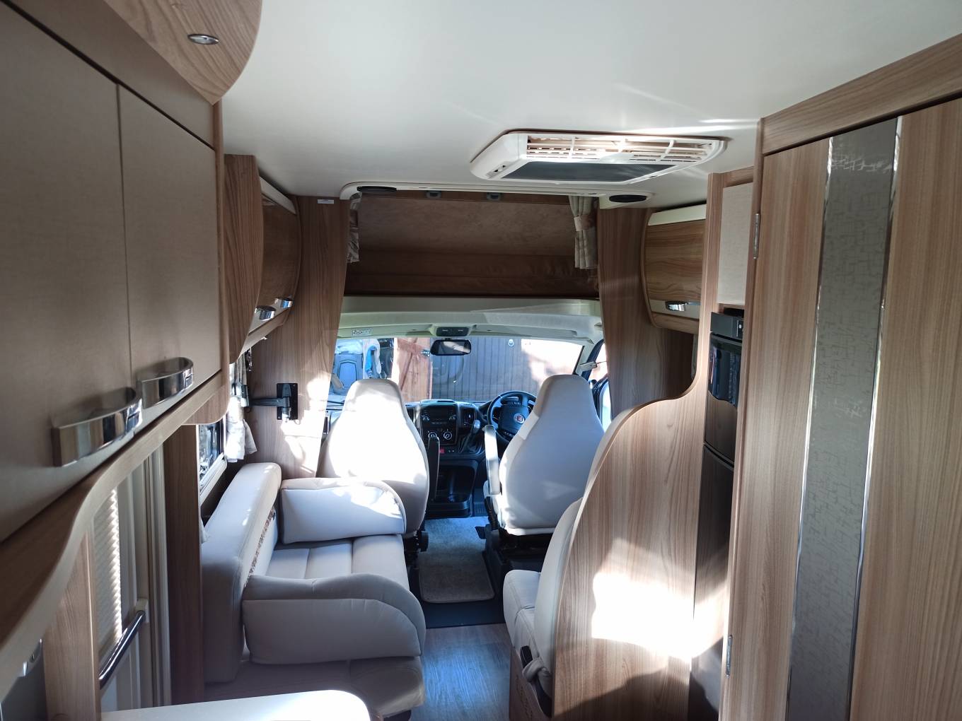 A 150 BHP 2.3 litre semi auto box, cab AC, and habitation AC too via a Dometic ceiling-mounted unit, comfort in all climes is assured. New motorhome specific tyres all round. Four belts, sleeps six in three separate areas.