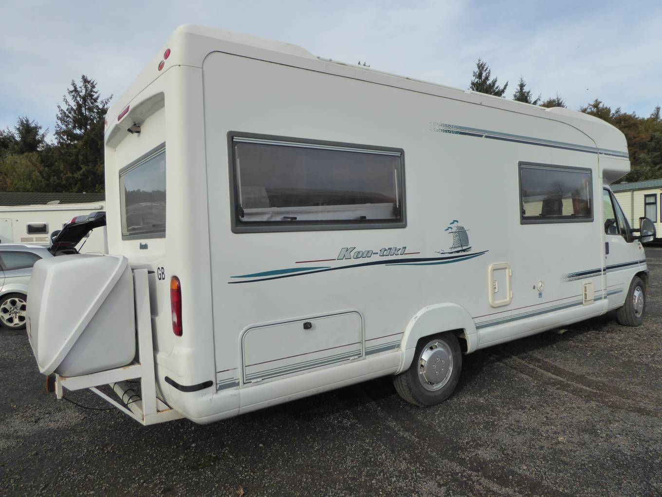 Call with any questions on 01423 609985. PRICE REDUCED.This is a coachbuilt Swift Kontiki 640 first registered in February 2001, has travelled 41763 miles which is below average mileage, has an MOT expiring in March 2019, weighs 3850kg and is built on a Fiat Ducato chassis. Externally it benefits from a reversing camera, tow bar, 100 watt solar panel, Fiamma ultra box which stores a safari room which is included in the sale, although condition is not known. Internally the upholstery is in good condition and the major benefit is the rear lounge with plenty of storage space above. The rear lounge converts into a large double bed and forward of this you will find the gas fire. Opposite is the washroom which includes a toilet, sink and shower attachment. In the dinette there are 2 forward facing seats with full seatbelts and a bench seat opposite; together these converts into a double bed. In the kitchen there is a cooker with 4 gas burners, oven and grill, small Electrolux fridge freezer and a sink. Moving forward the cab bed can be stored away neatly to allow for more headroom when driving. Upfront is the reversing camera, radio/CD player. Overall this is in good order for its age and it can be viewed near Easingwold in North Yorkshire. Please note this vehicle is owned by a dealer, as a potential buyer, should you purchase this vehicle, if the vehicle is not as described, of satisfactory quality or fit for purpose you may have a claim under the Consumer Rights Act 2015. Part Exchanges welcomed on this vehicle, for further information and photos please call us on 01423 609985 quoting Reference 88321.