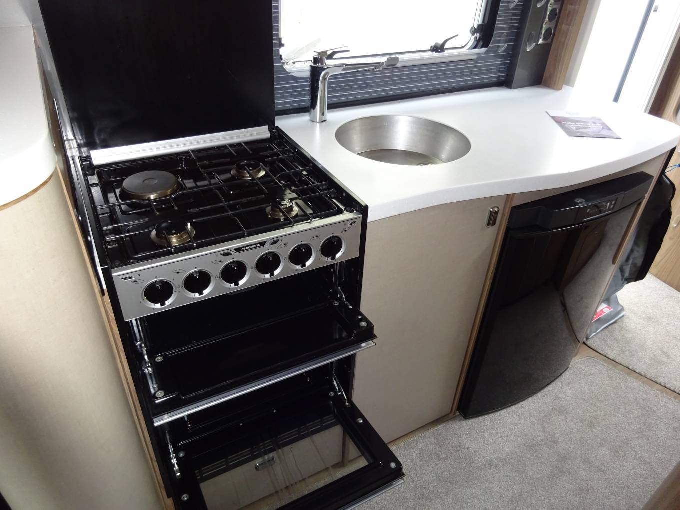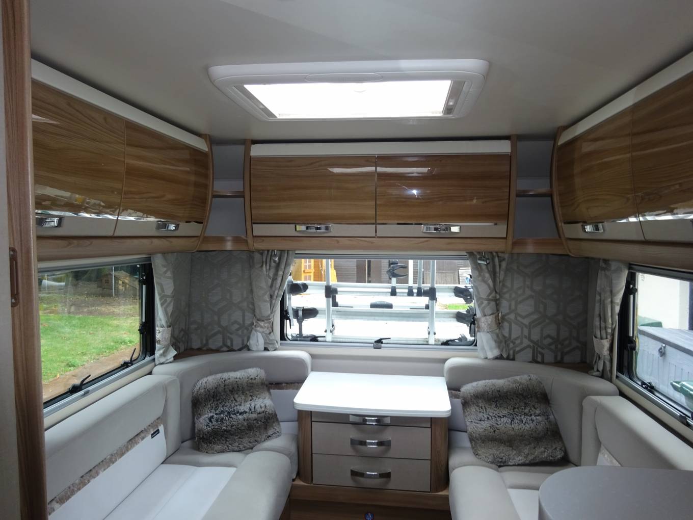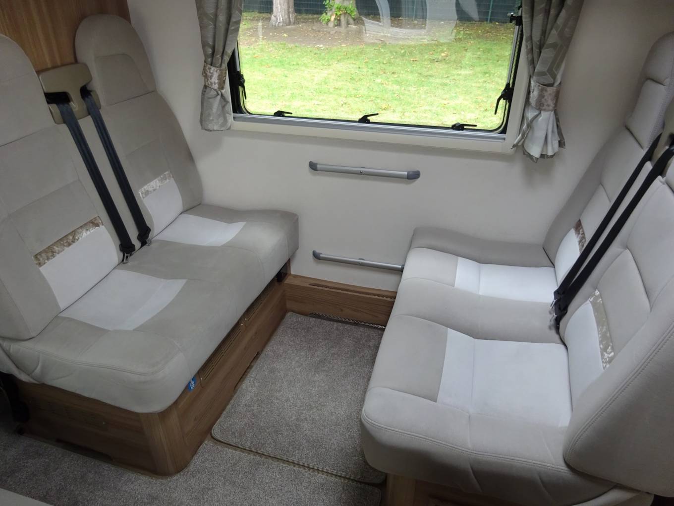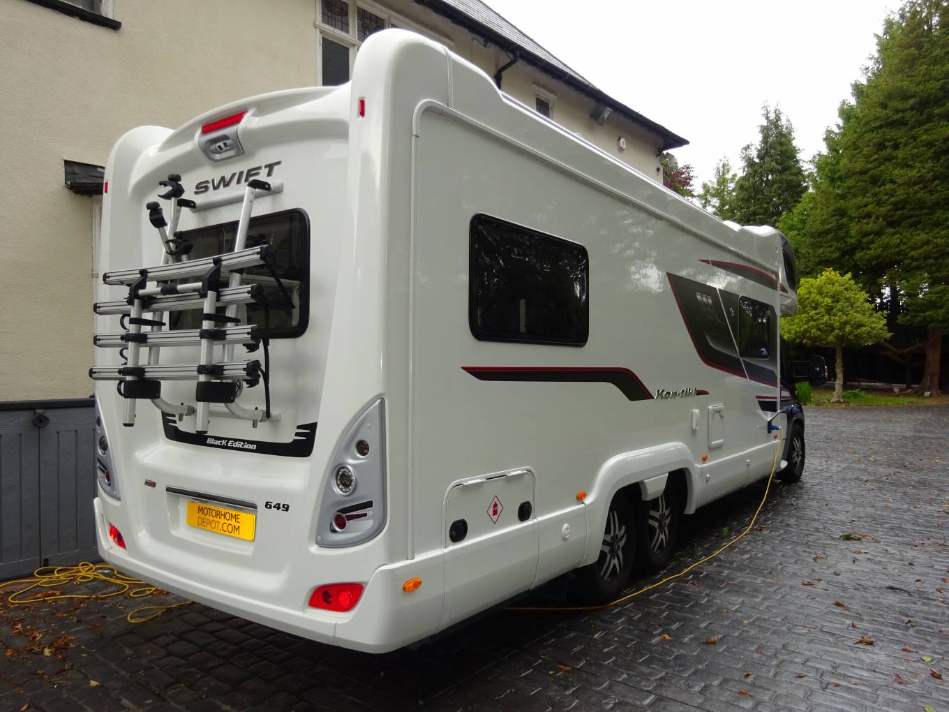 Based on the Fiat Ducato with 2287cc 180 bhp diesel engine and 6 speed manual gearbox. In the cab we have Air Con, cruise control. Reversing camera. Pleated black-out system for front and side windows in driver’s cabin, electric mirrors and front windows. There are 3 sets of keys. Outside we have a Fiamma F45L wind out awning, a Gaslow two bottle LPG system is fitted with an external filler, easy to fill and very cheap to run. There is a bike rack for 4 bikes, external shower and BBQ points. Given the value of the motorhome and all the extras fitted a top of the range alarm system ahs been fitted in addition to the the swift command tracking system.