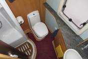 The first thing you will notice about this motorhome is how well it has been looked after and bright and clean it is inside. Working from the rear of the motorhome you have a very generous sized washroom. This has a Thetford cassette toilet, wash basin and separate shower and there is plenty of room in this washroom.