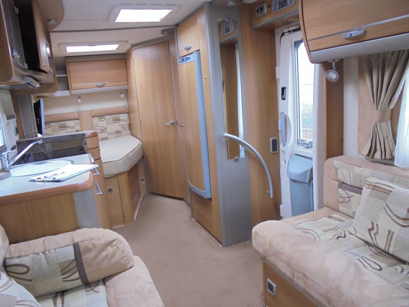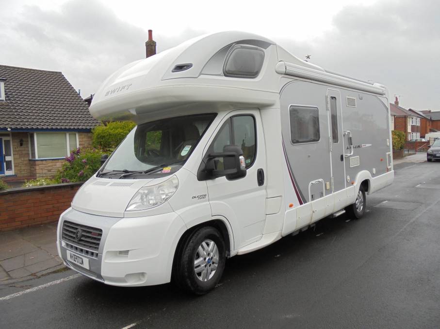 Here we have a Swift Kontiki 665p in excellent condition inside and out. It has the 3.0 engine with 33,547 miles on the clock, it has been regularly serviced and has 4 new tyres. The layout consists of a rear French bed with storage underneath, next to the bed is a good sized bathroom. In the centre of the motrhome is the kitchen area with large fridge freezer and microwave and at the front is the louge area with 2 large bench seats that make into a double bed, there is also a double bed over the cab. It comes with cab air con, rear camera, alloy wheels, blown heating, TV / DVD, rear ladder, roof rack, bike rack and outside BBQ point. This is a beautiful motorhome with 2 owners, call for more photos and information.
